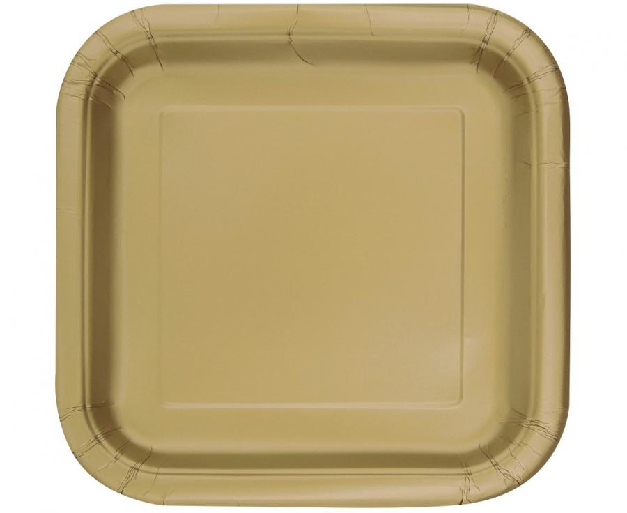Talerzyki papierowe złote 23 cm kwadratowe 14 szt