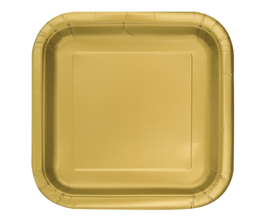 Talerzyki papierowe złote kwadratowe 18 cm 16 szt