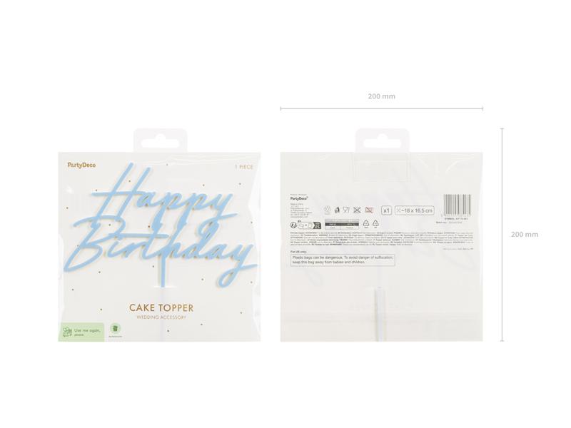 Topper akrylowy na tort Happy Birthday mglisty niebieski 16.5 cm