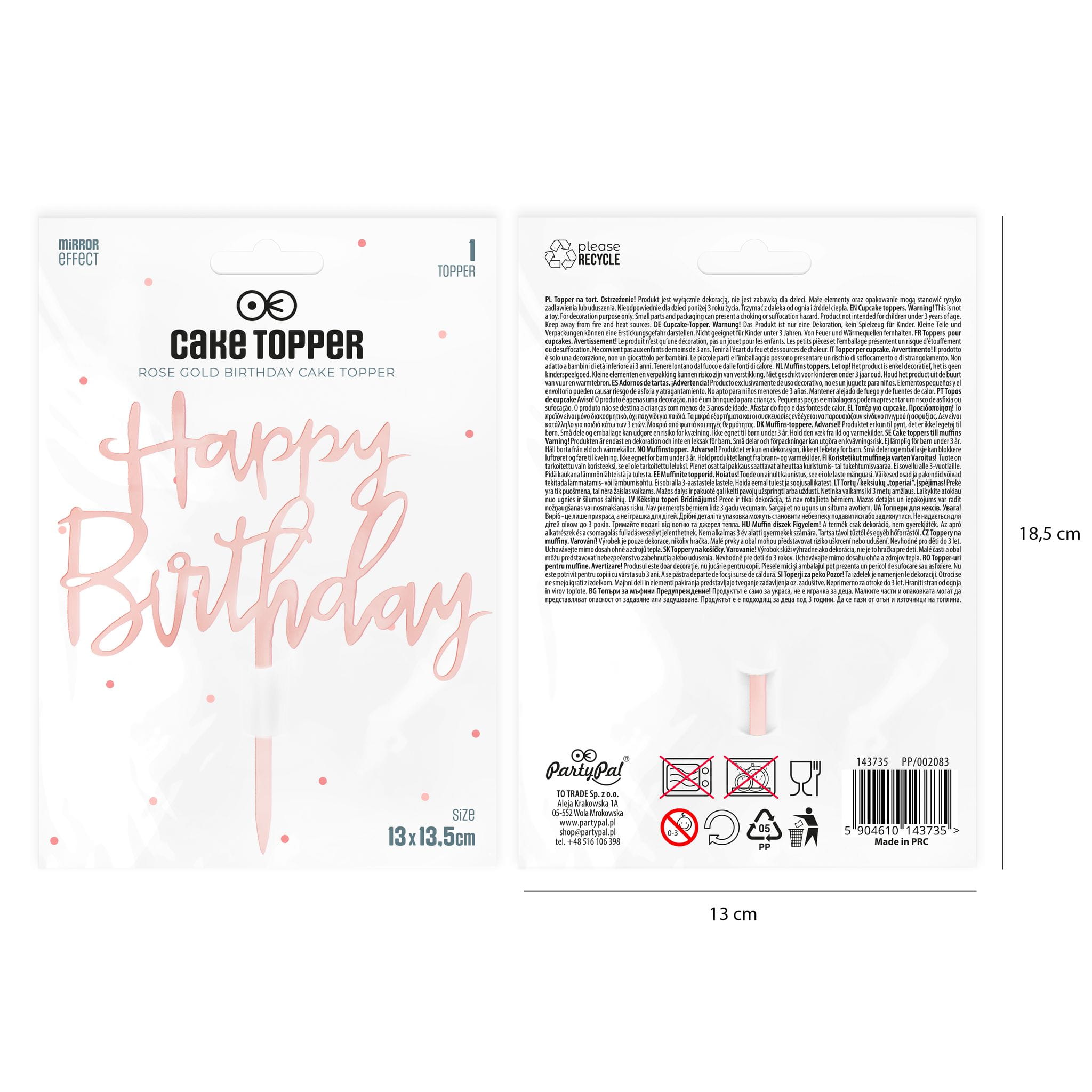 Topper na tort Happy Birthday lustrzany rose gold 1 szt