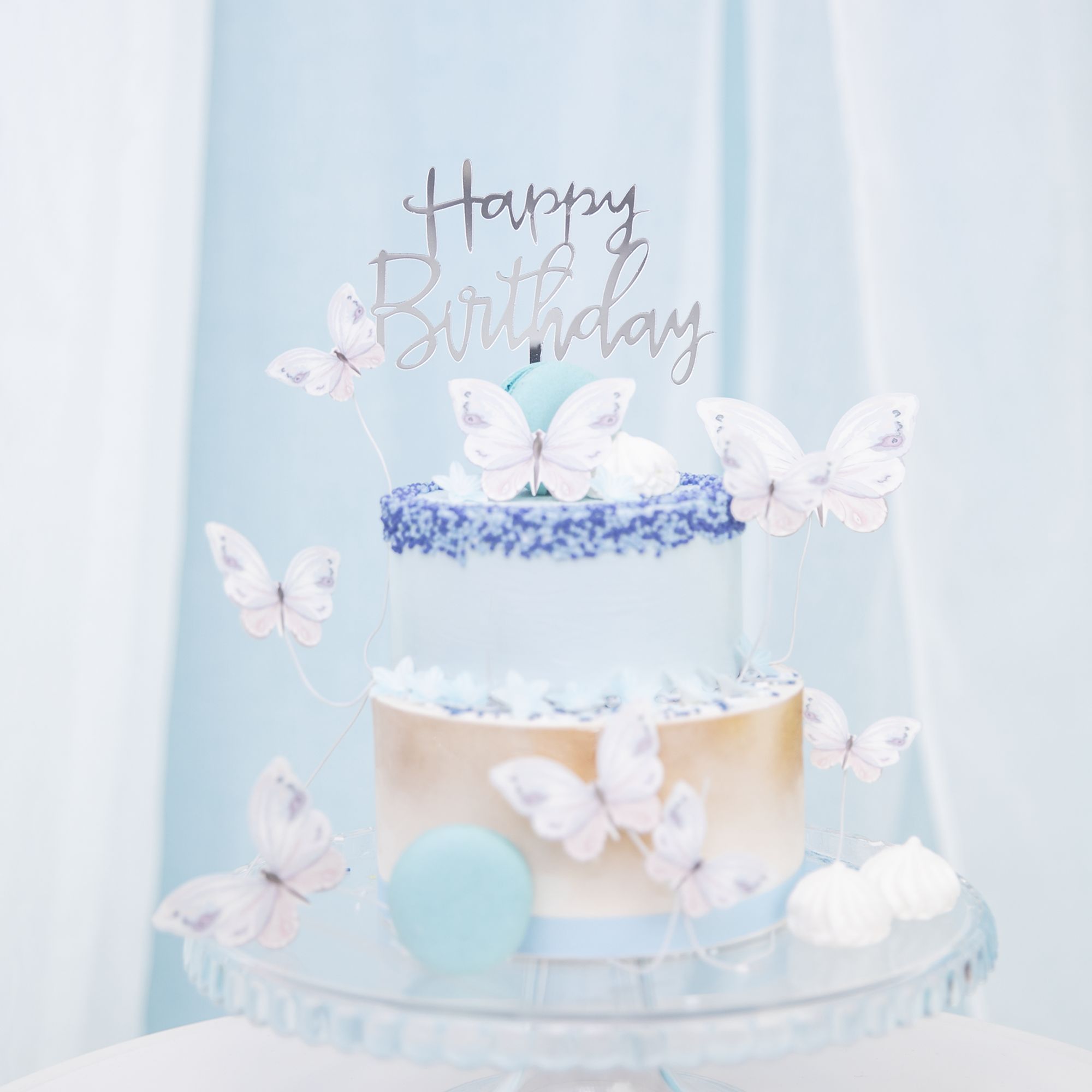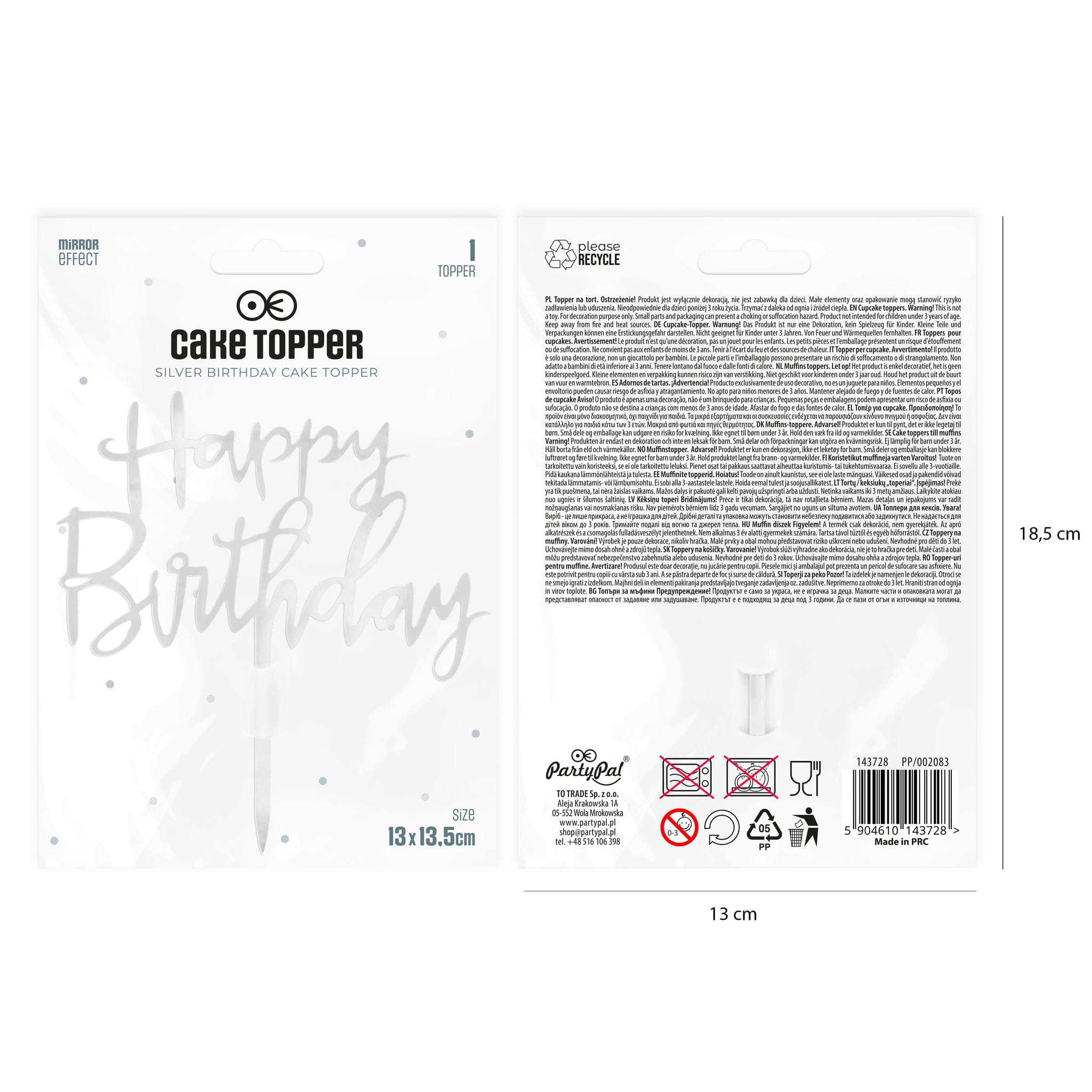 Topper na tort Happy Birthday lustrzany srebrny 1 szt