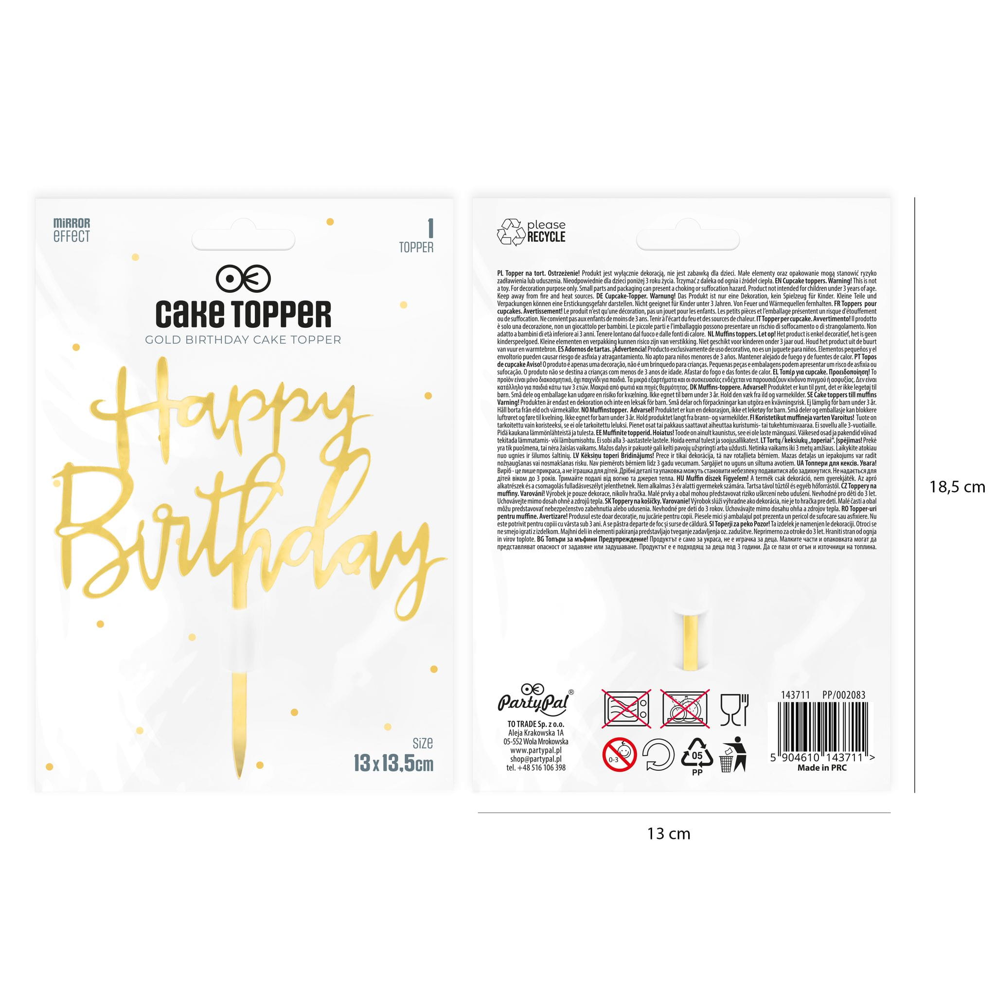 Topper na tort Happy Birthday lustrzany złoty 1 szt