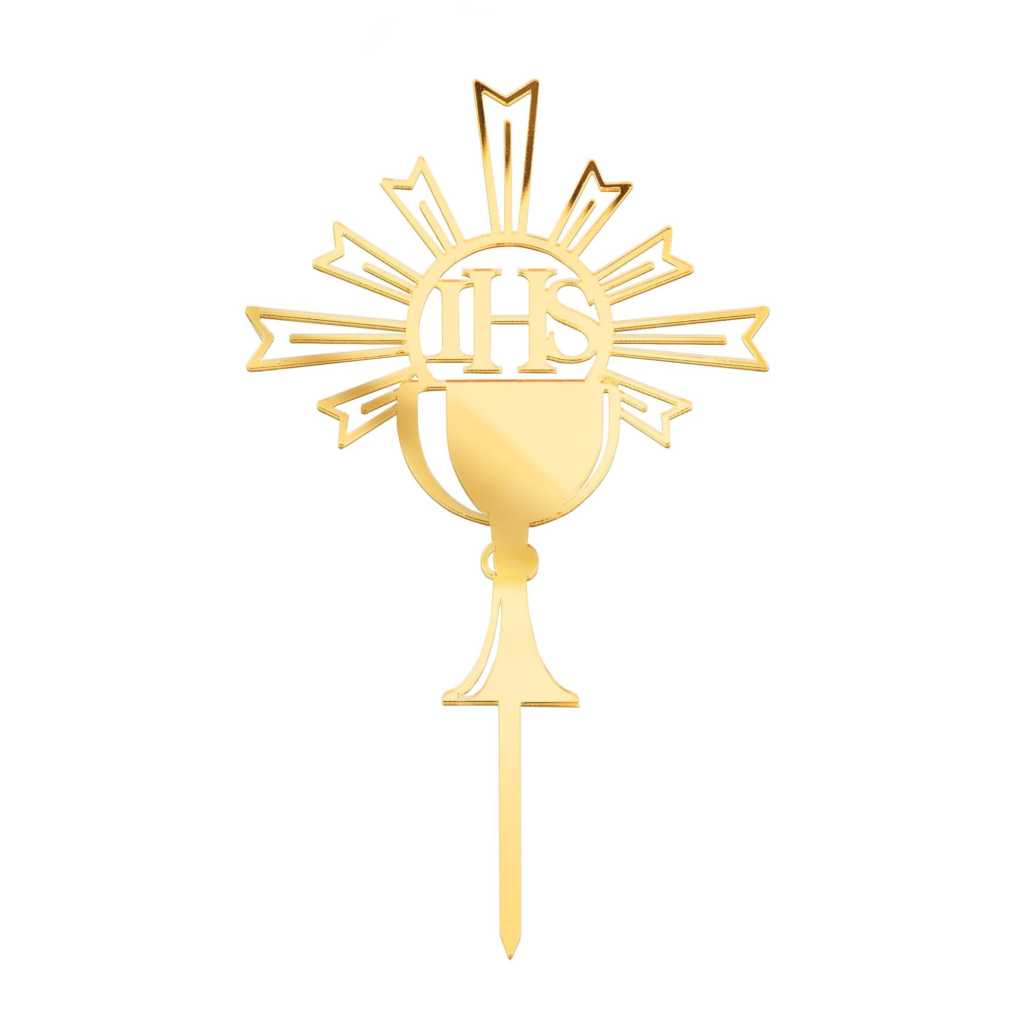 Topper na tort Komunia Święta IHS Kielich lustrzany złoty 1 szt