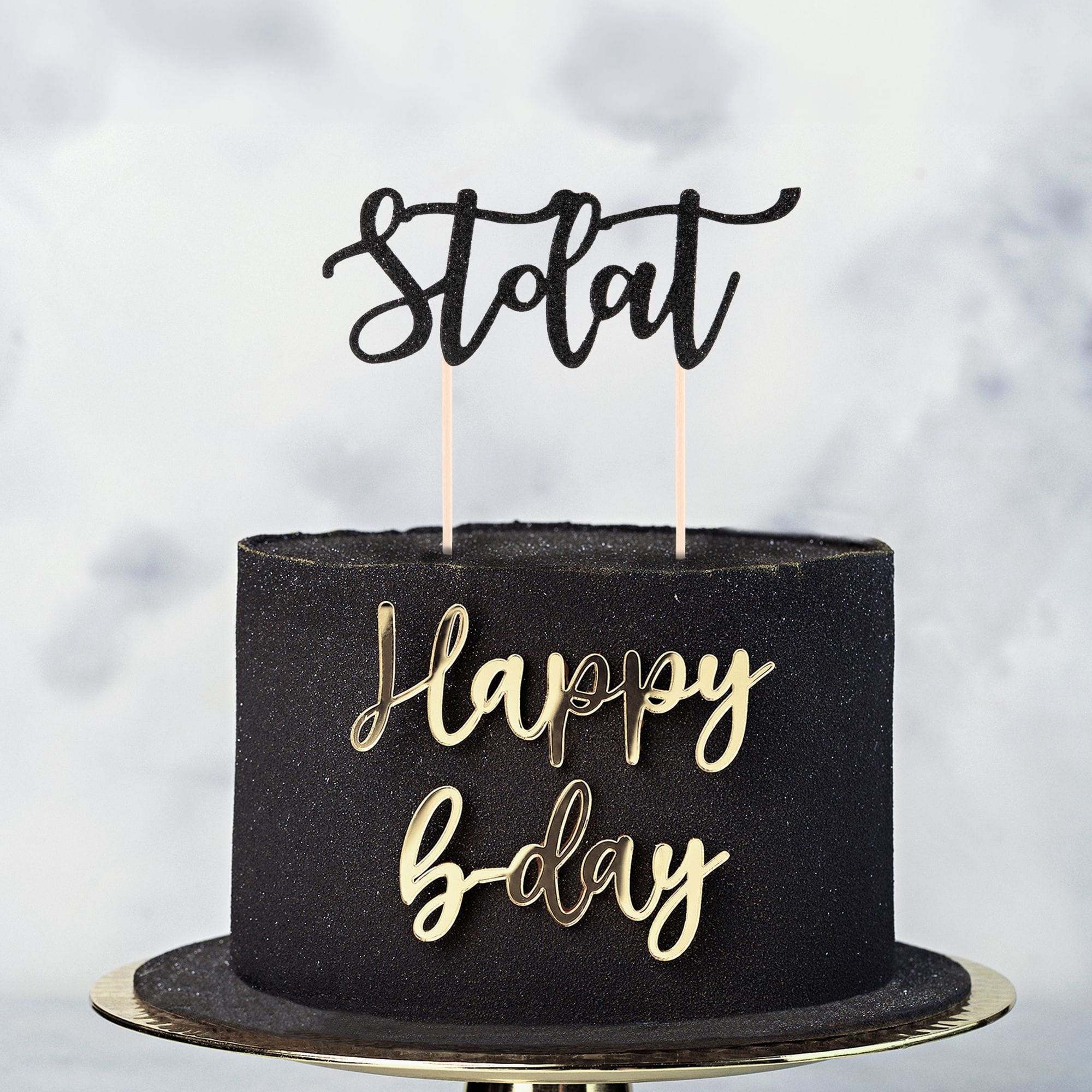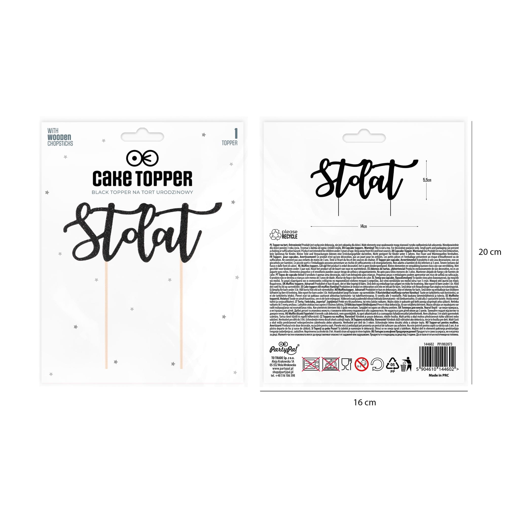 Topper na tort Sto lat brokatowy czarny 1 szt