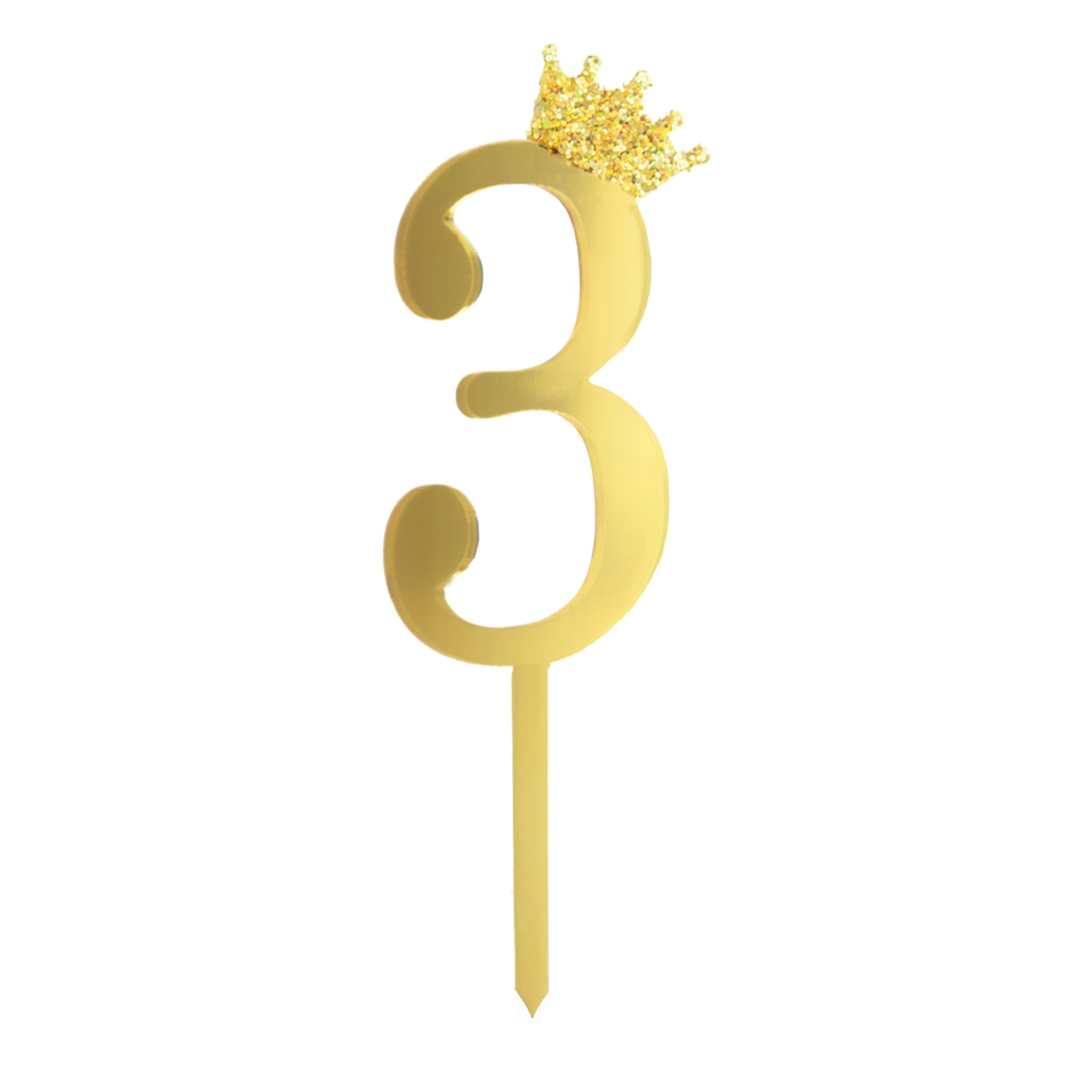 Topper na tort cyfra 3 złoty 1 szt