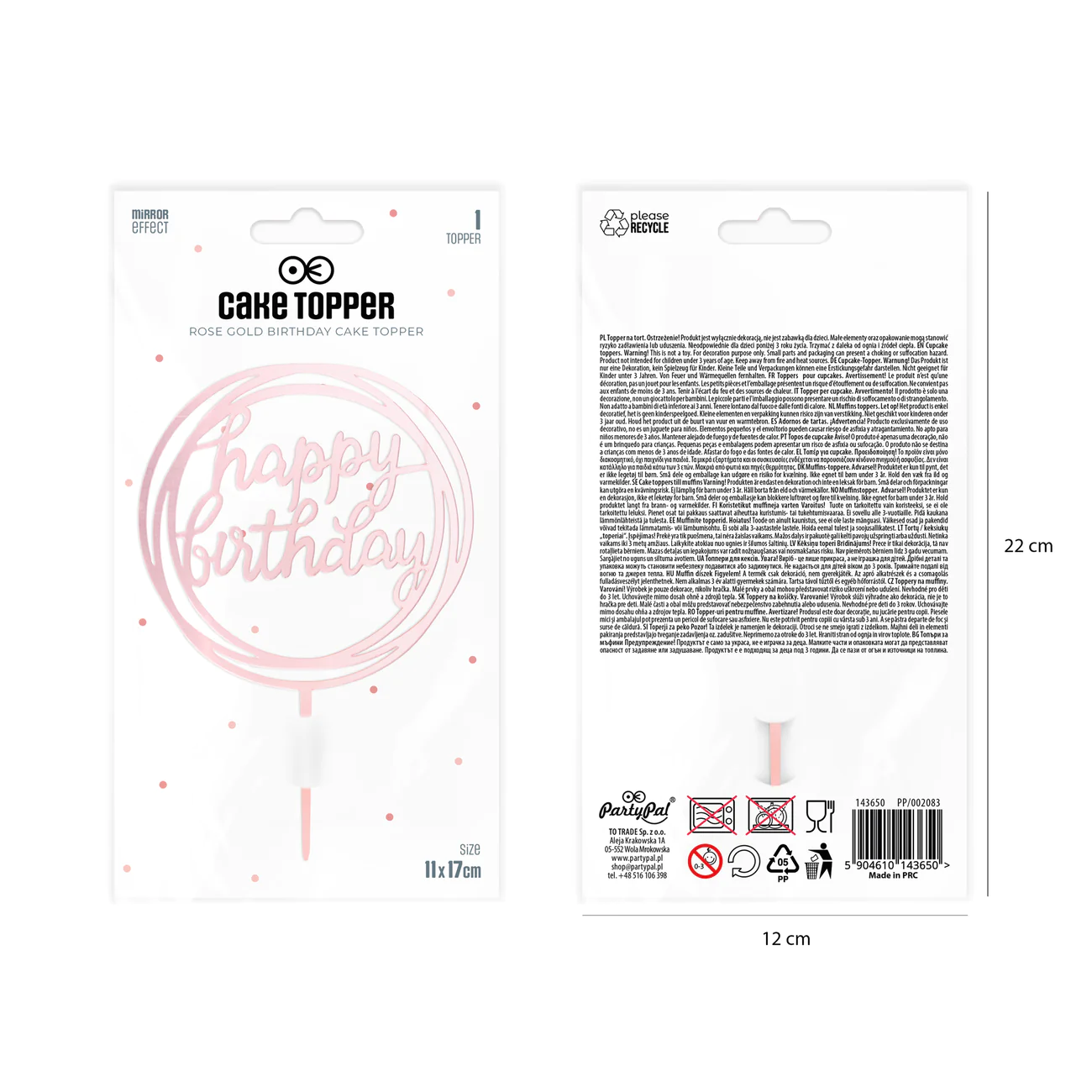 Topper na tort urodzinowy Happy Birthday okrągły różowe złoto rose gold