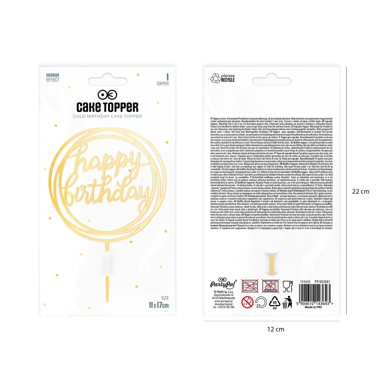 Topper na tort urodzinowy Happy Birthday okrągły złoty