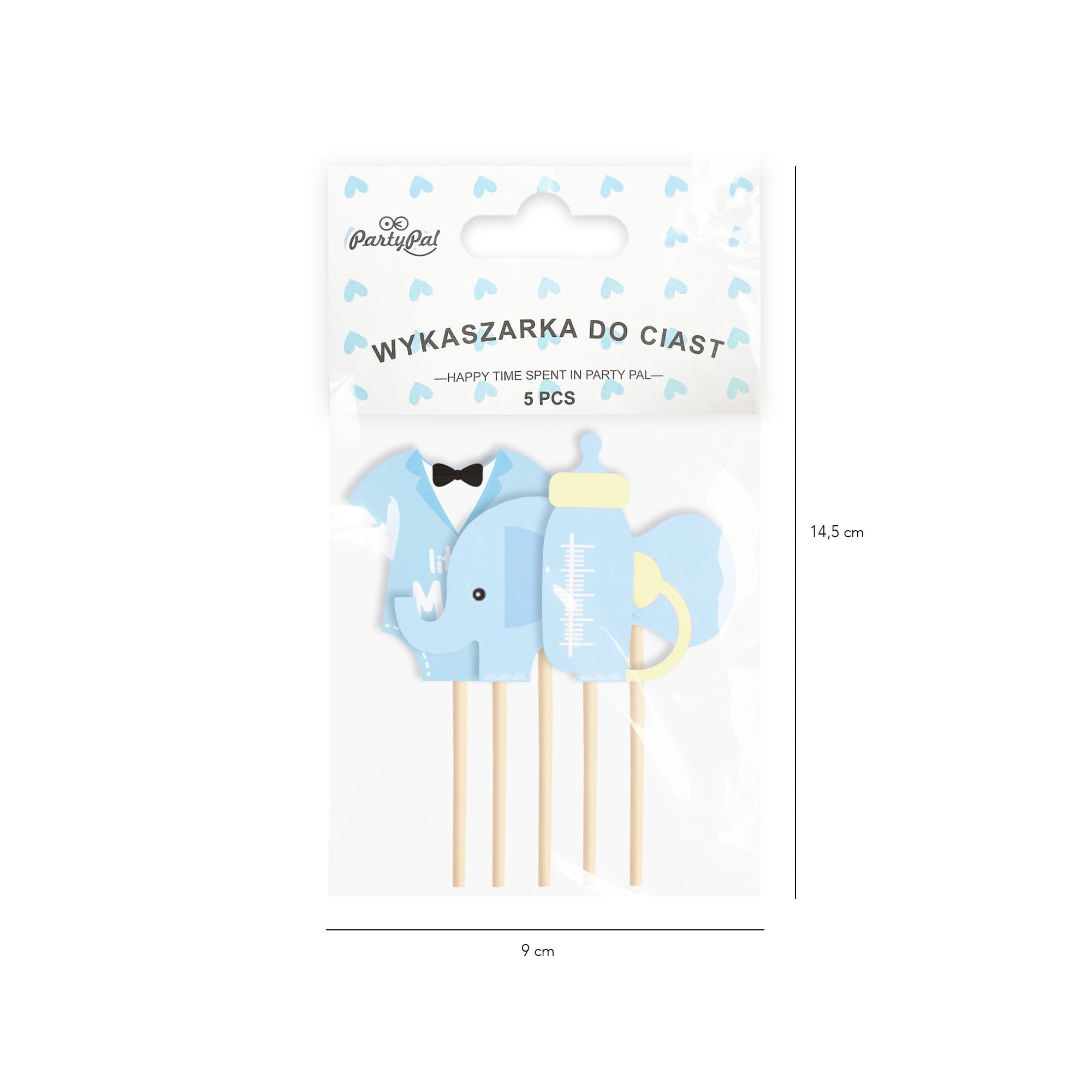 Toppery na tort Baby Shower Słonik niebieskie 5 szt