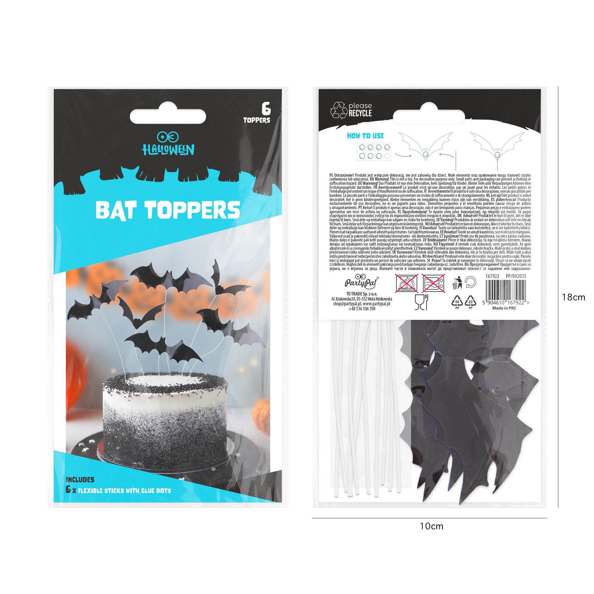 Toppery na tort Halloween Nietoperze DIY 6 szt