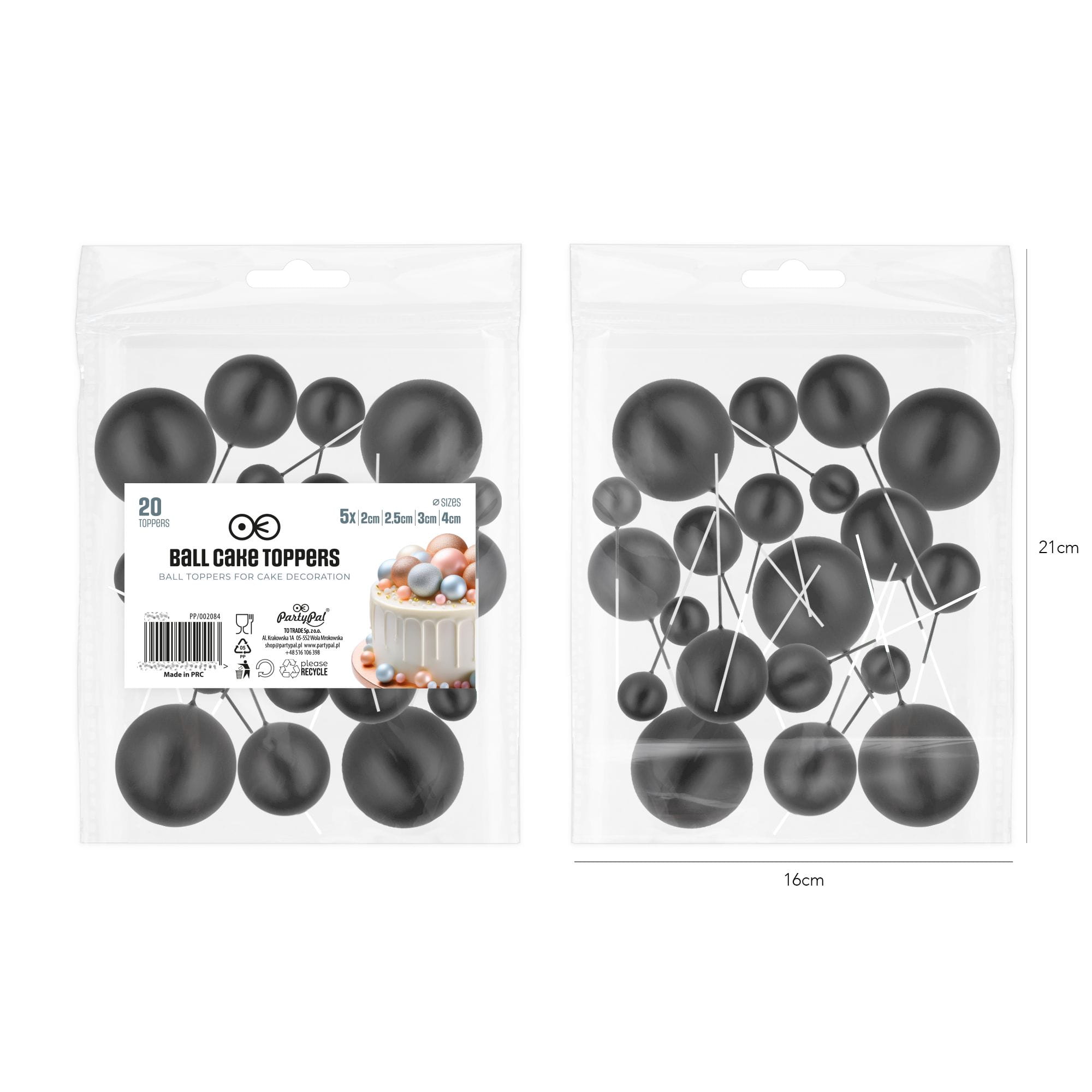 Toppery na tort kulki czarne matowe 20 szt