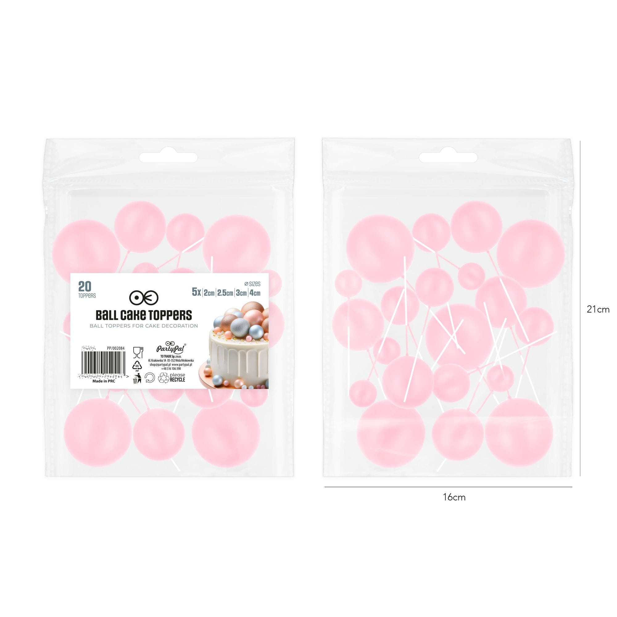 Toppery na tort kulki jasnoróżowe matowe 20 szt