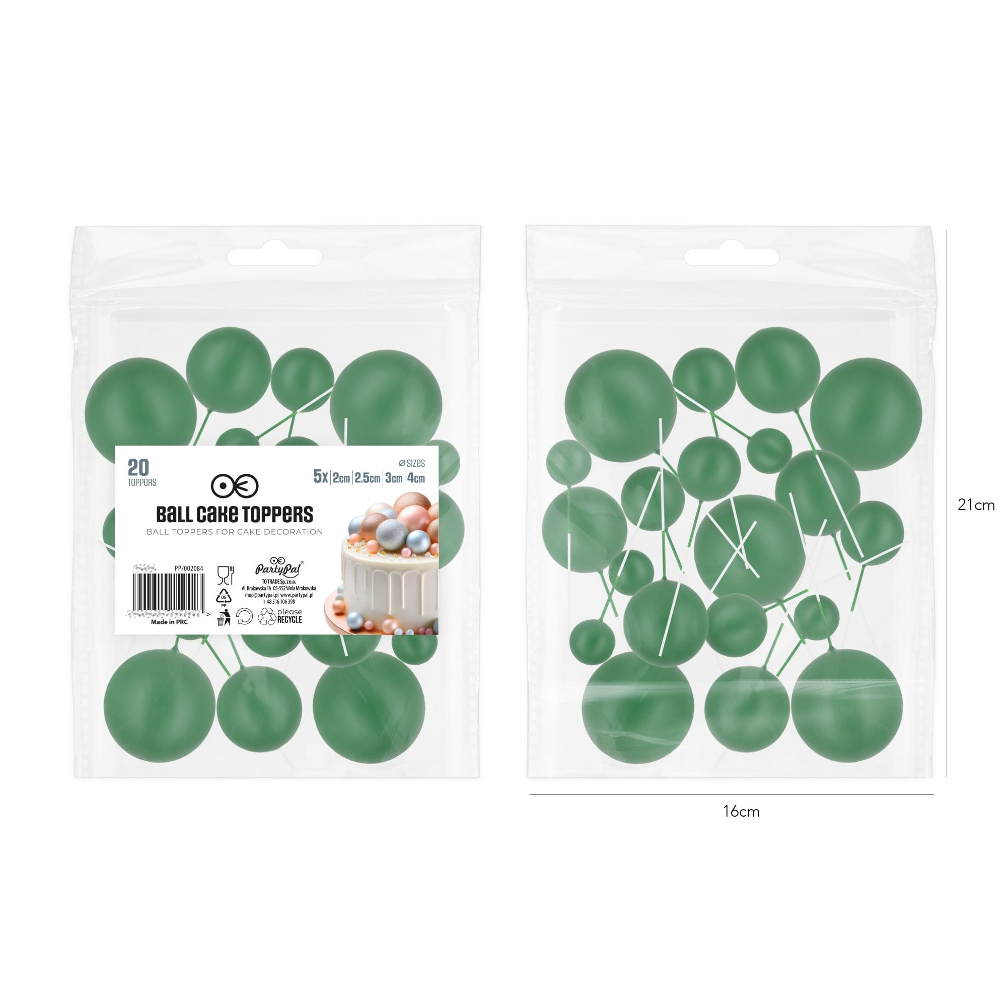 Toppery na tort kulki zielone matowe 20 szt