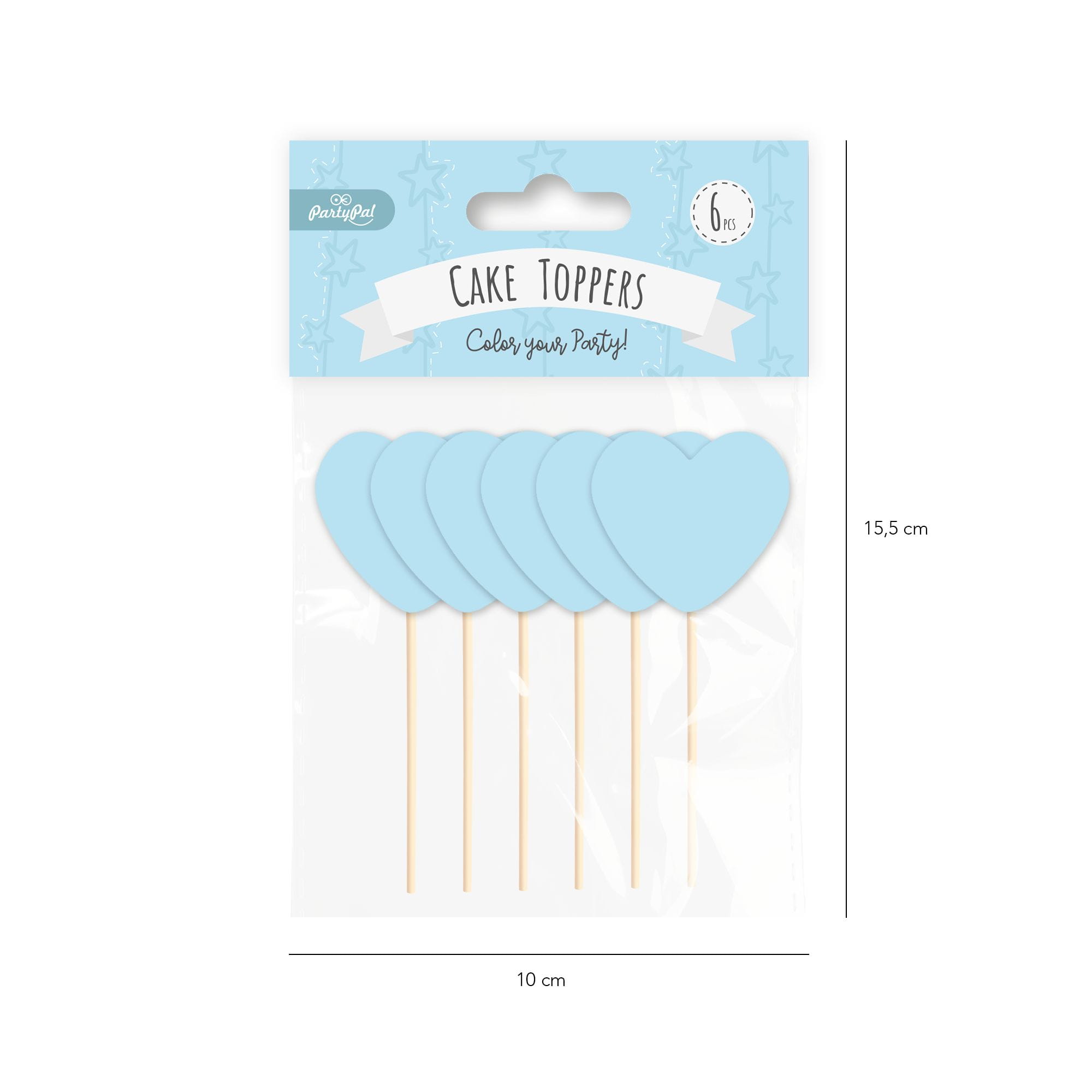 Toppery na tort serca niebieskie 6 szt