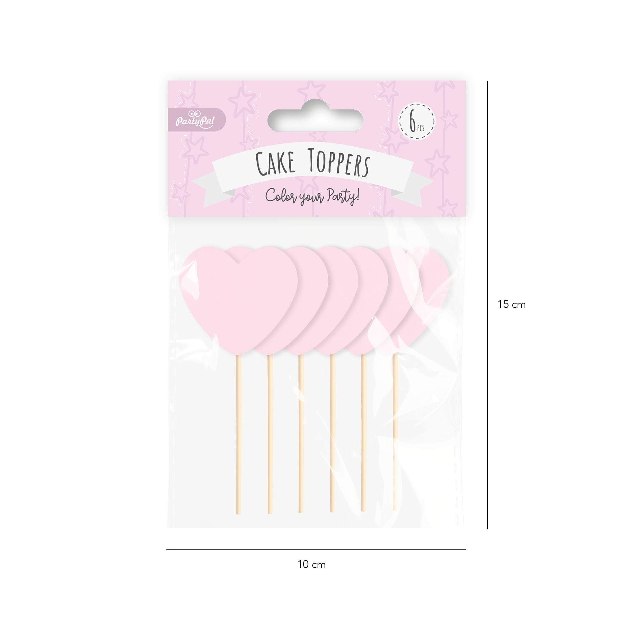 Toppery na tort serca różowe 6 szt