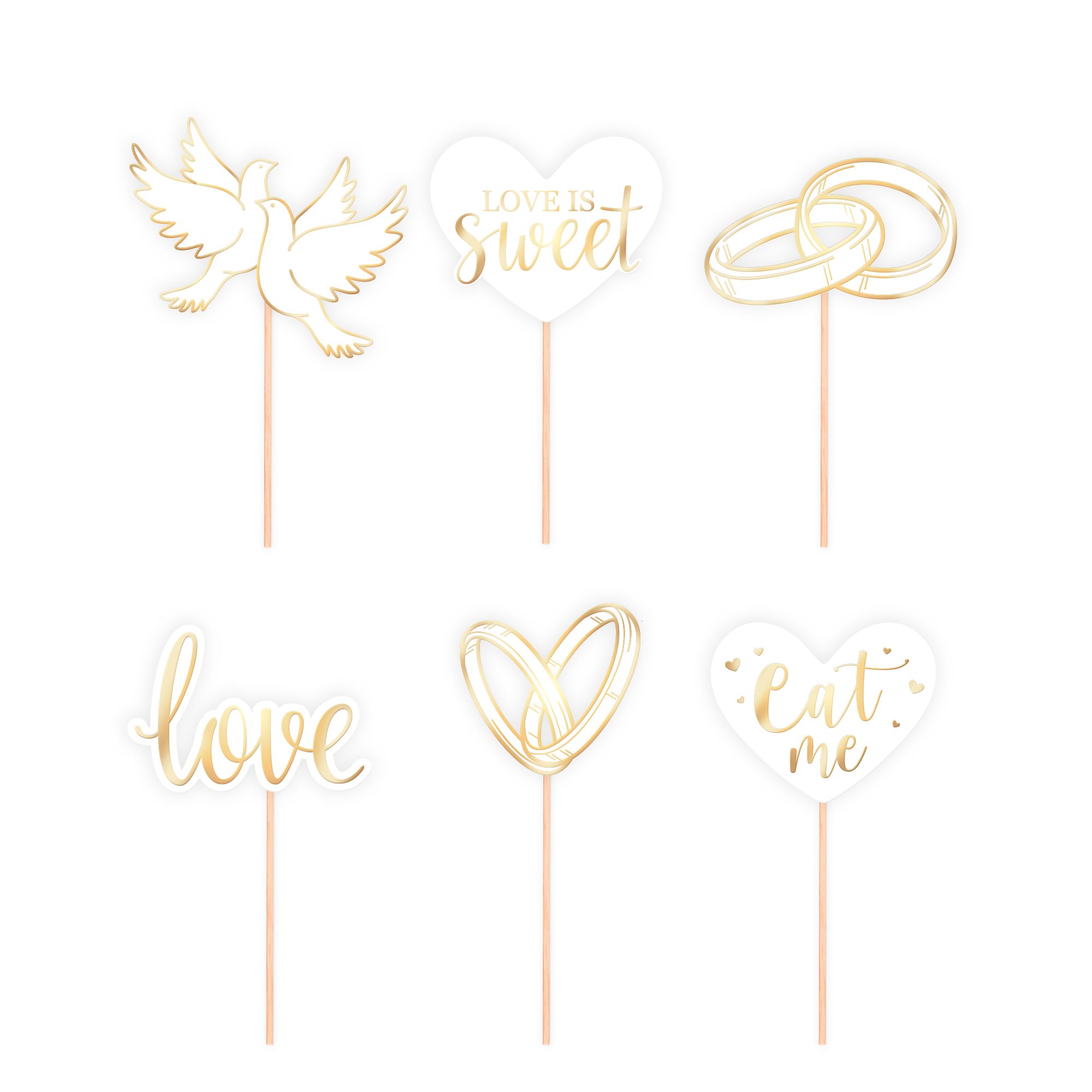 Toppery na tort weselny ślub biało-złote 12 szt