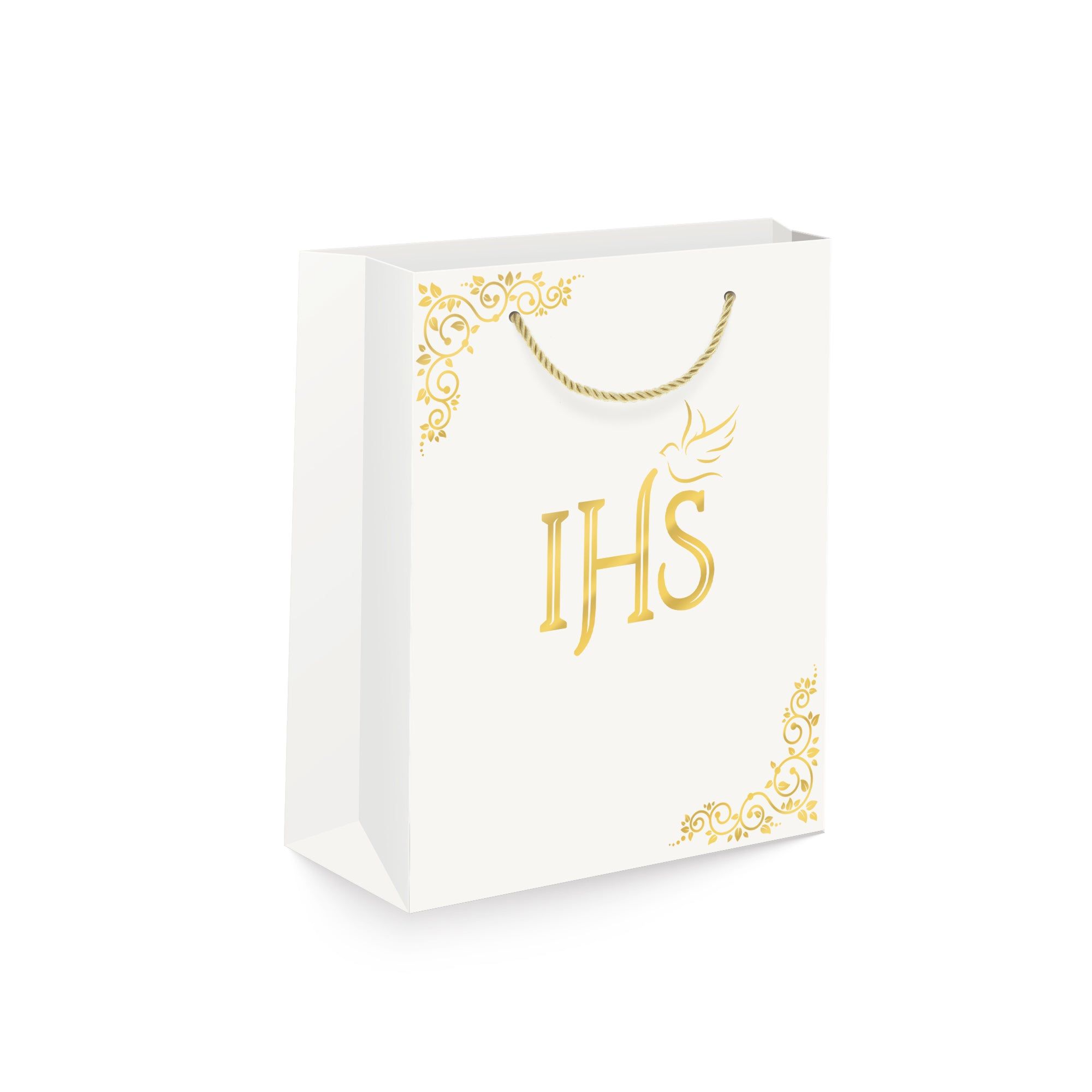 Torebka na prezenty IHS biało-złote duża 1 szt