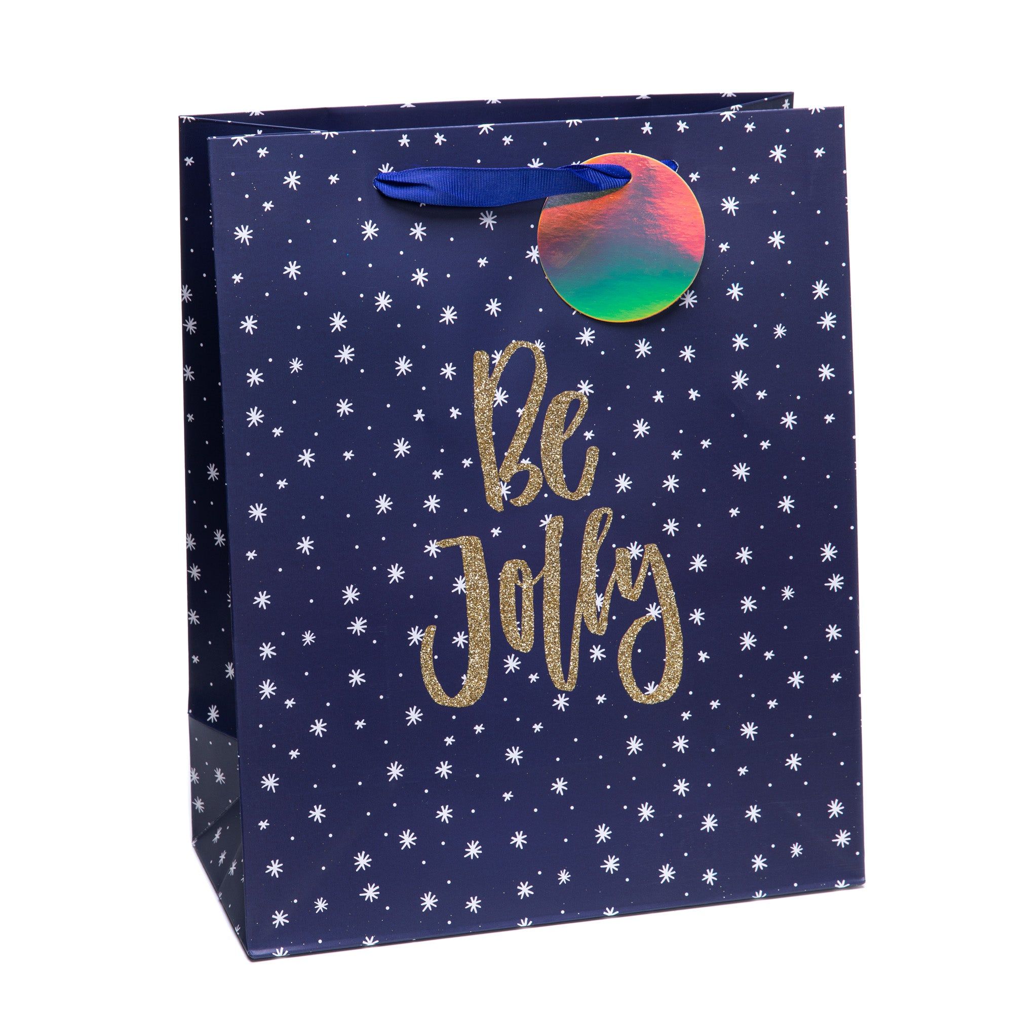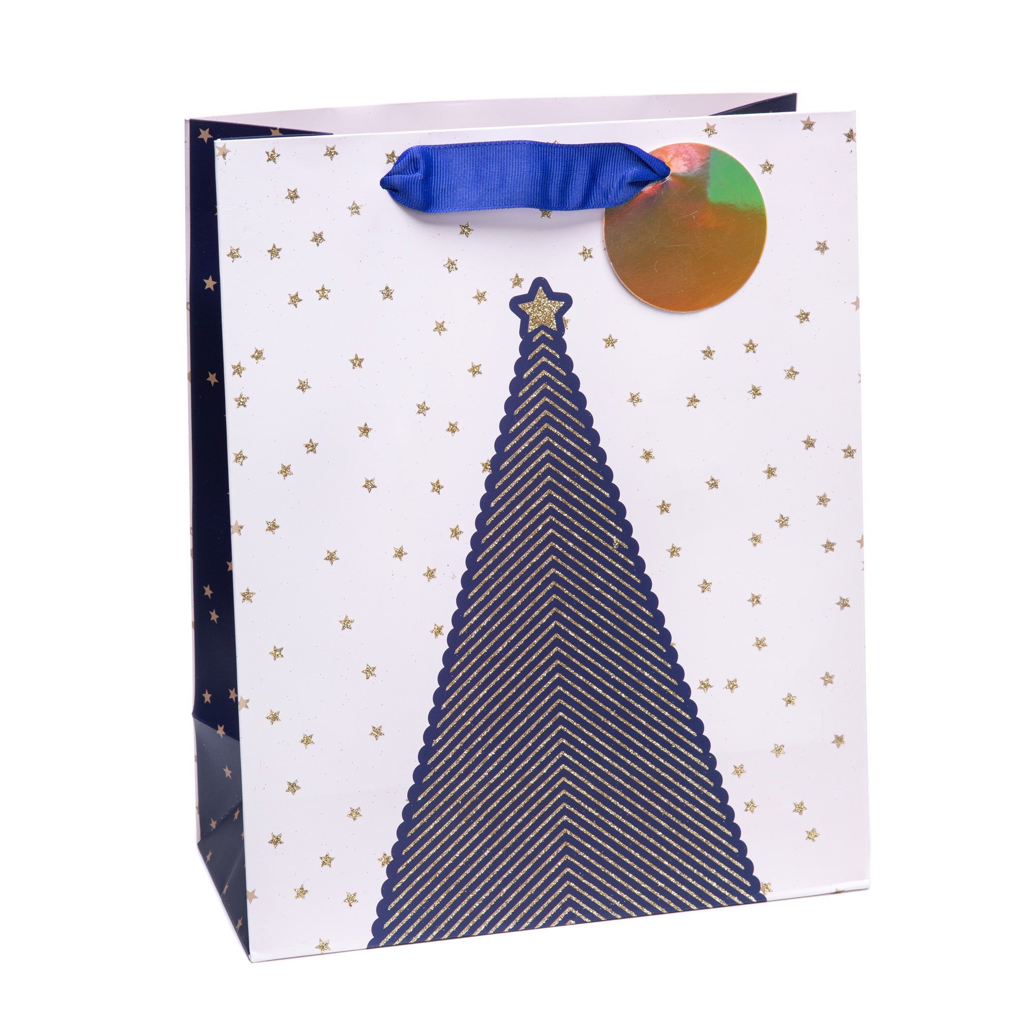 Torebka na prezenty Merry Christmas granatowo-białe duża 1 szt