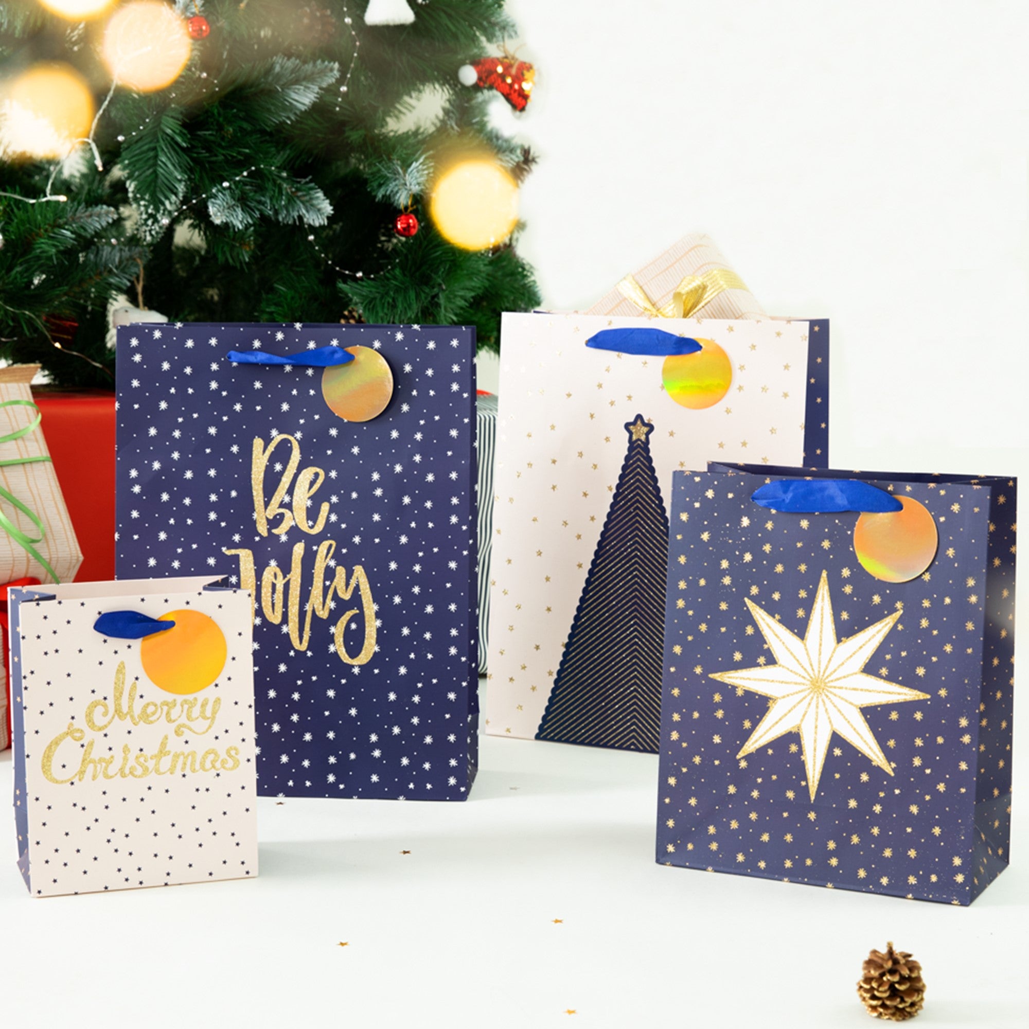 Torebka na prezenty Merry Christmas granatowo-białe mała 1 szt