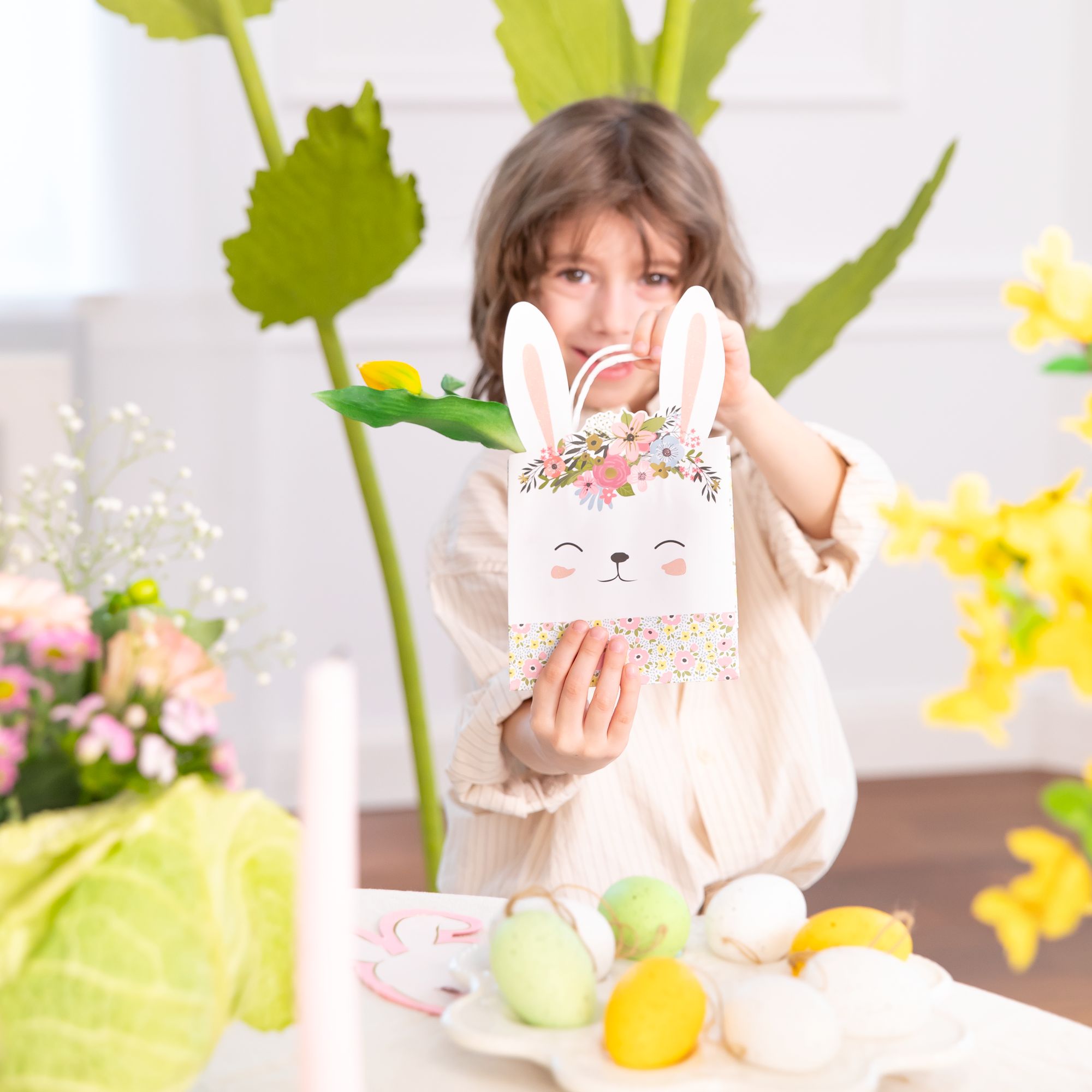 Torebka na prezenty w kształcie Zajączka z kwiatami małe 1 szt