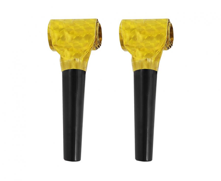 Trąbki holograficzne złote z czarnym ustnikiem 100 szt