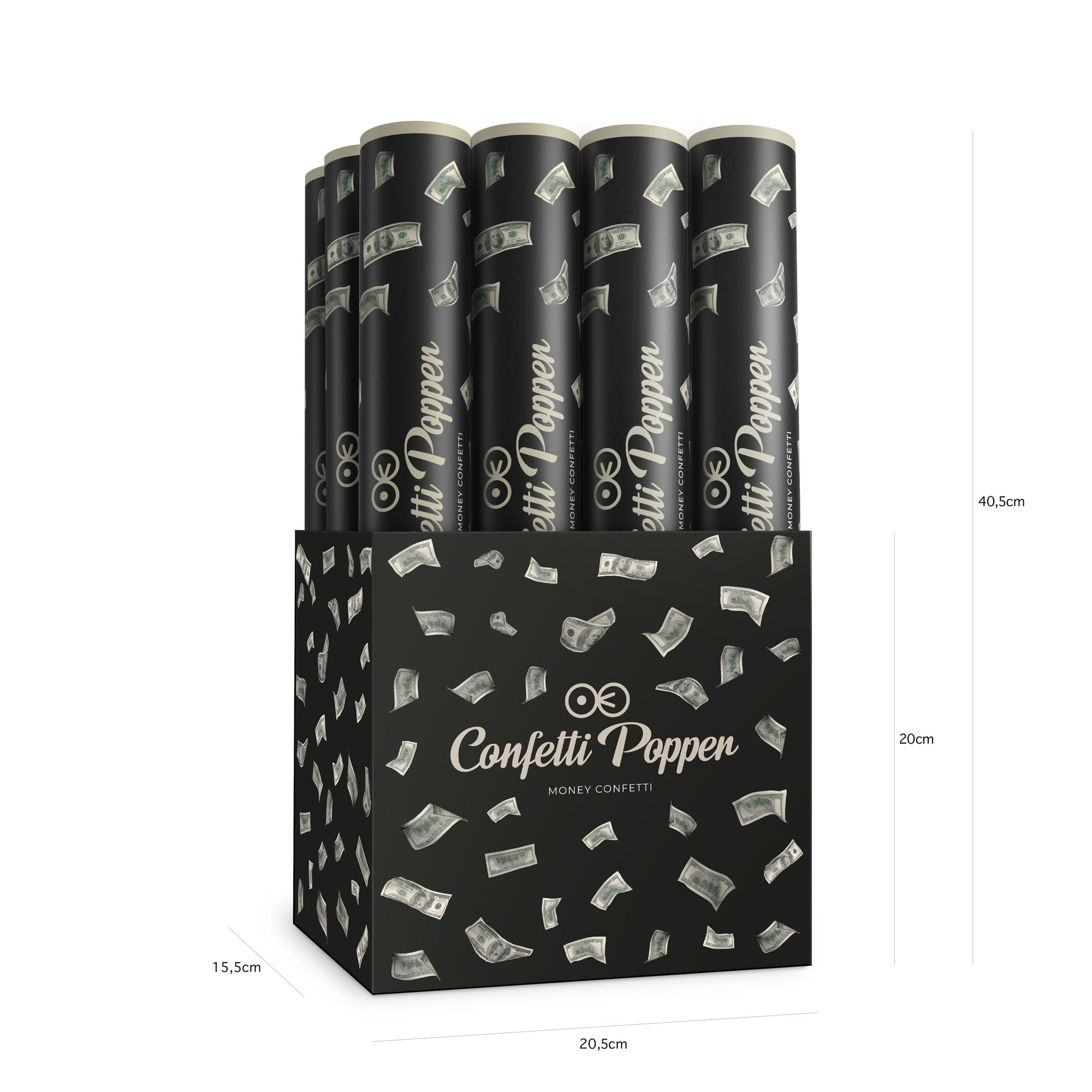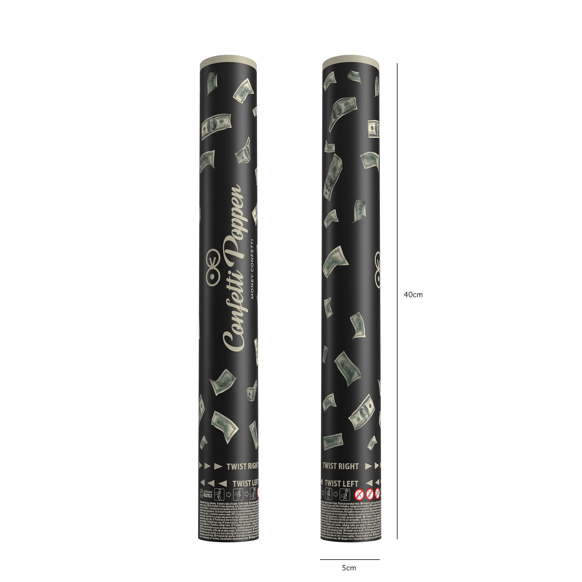 Tuba z konfetti banknoty 100 Dolarów 40 cm