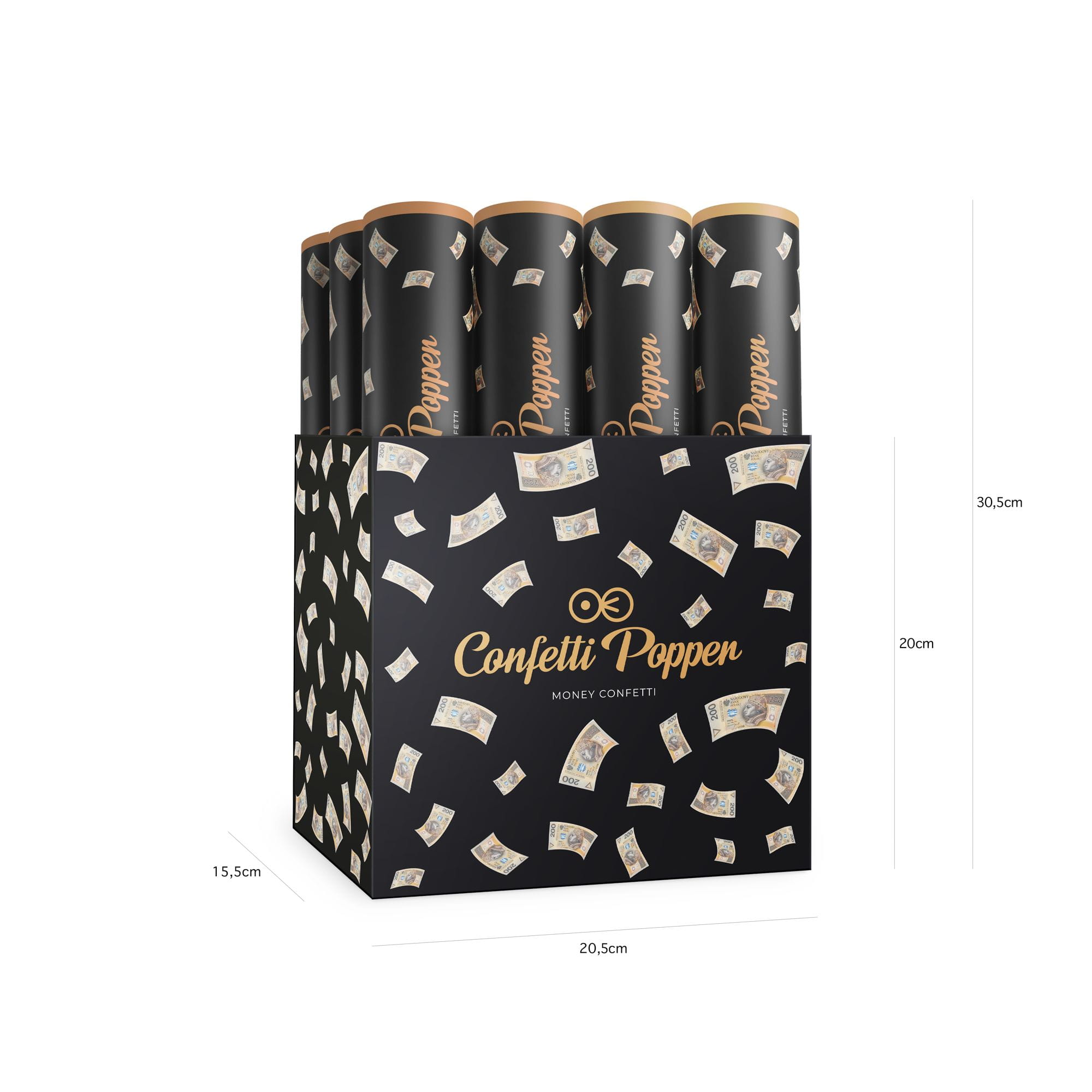 Tuba z konfetti banknoty 200 Złotych 30 cm