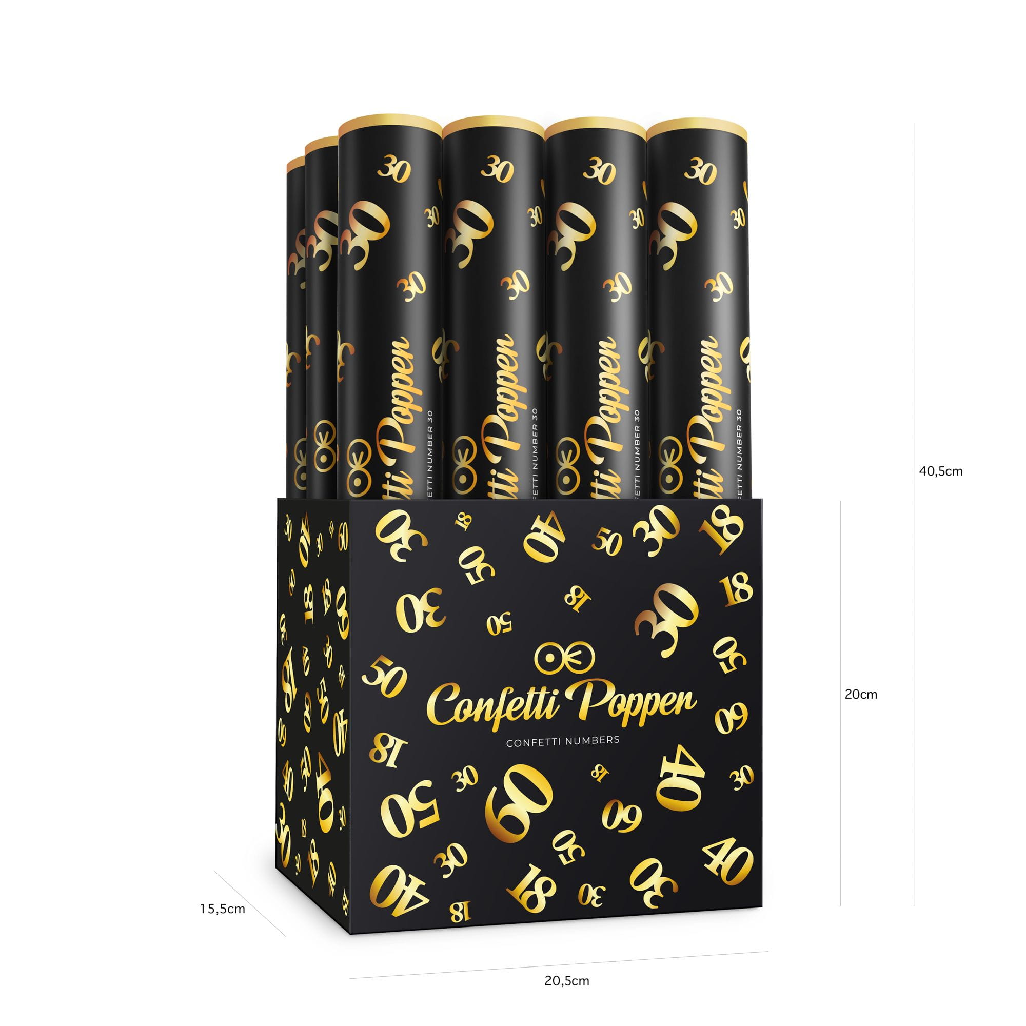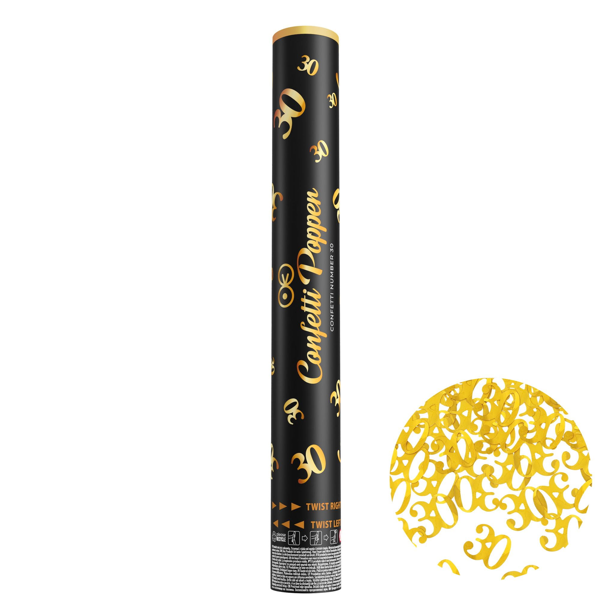 Tuba z konfetti cyfra 30 metaliczne złote 40 cm
