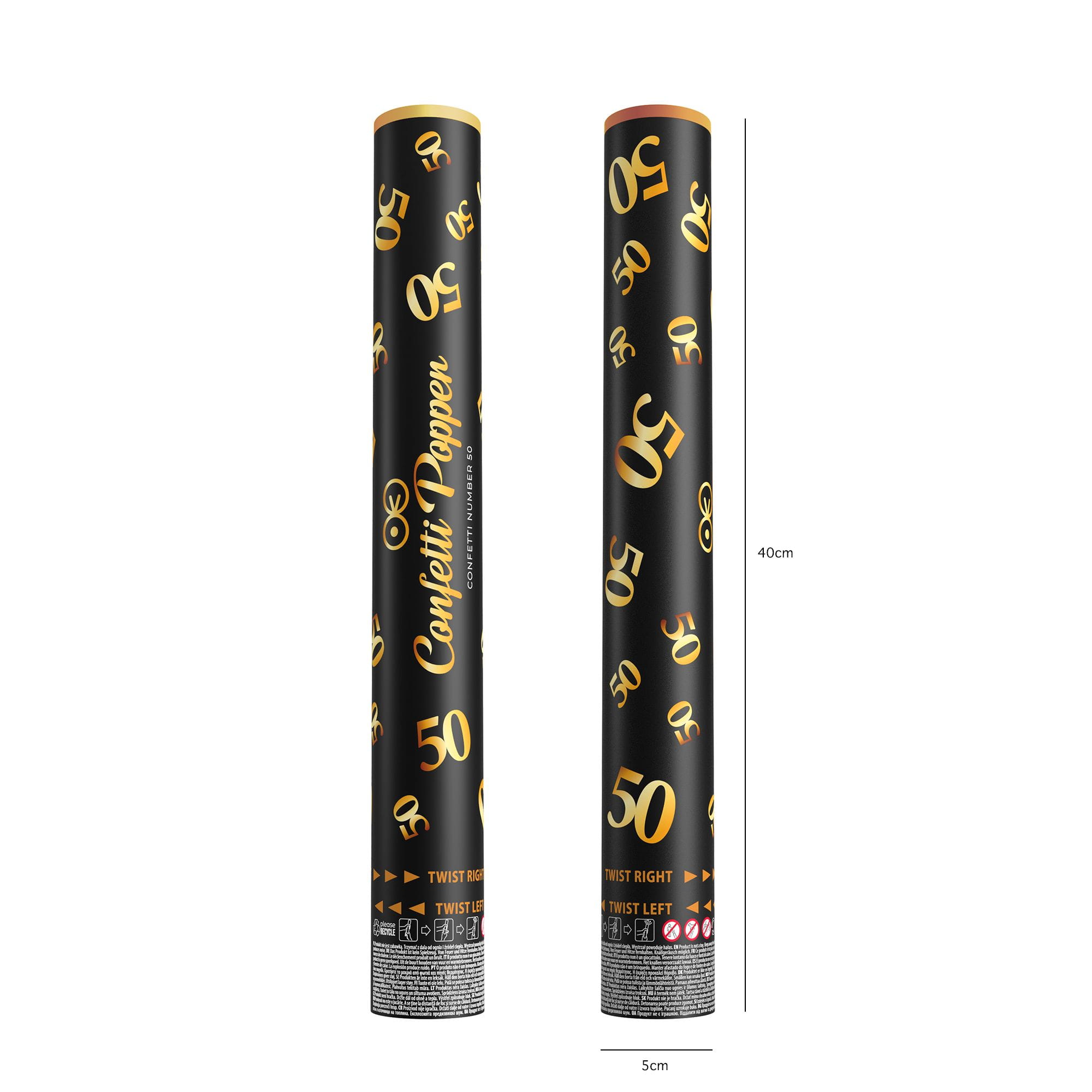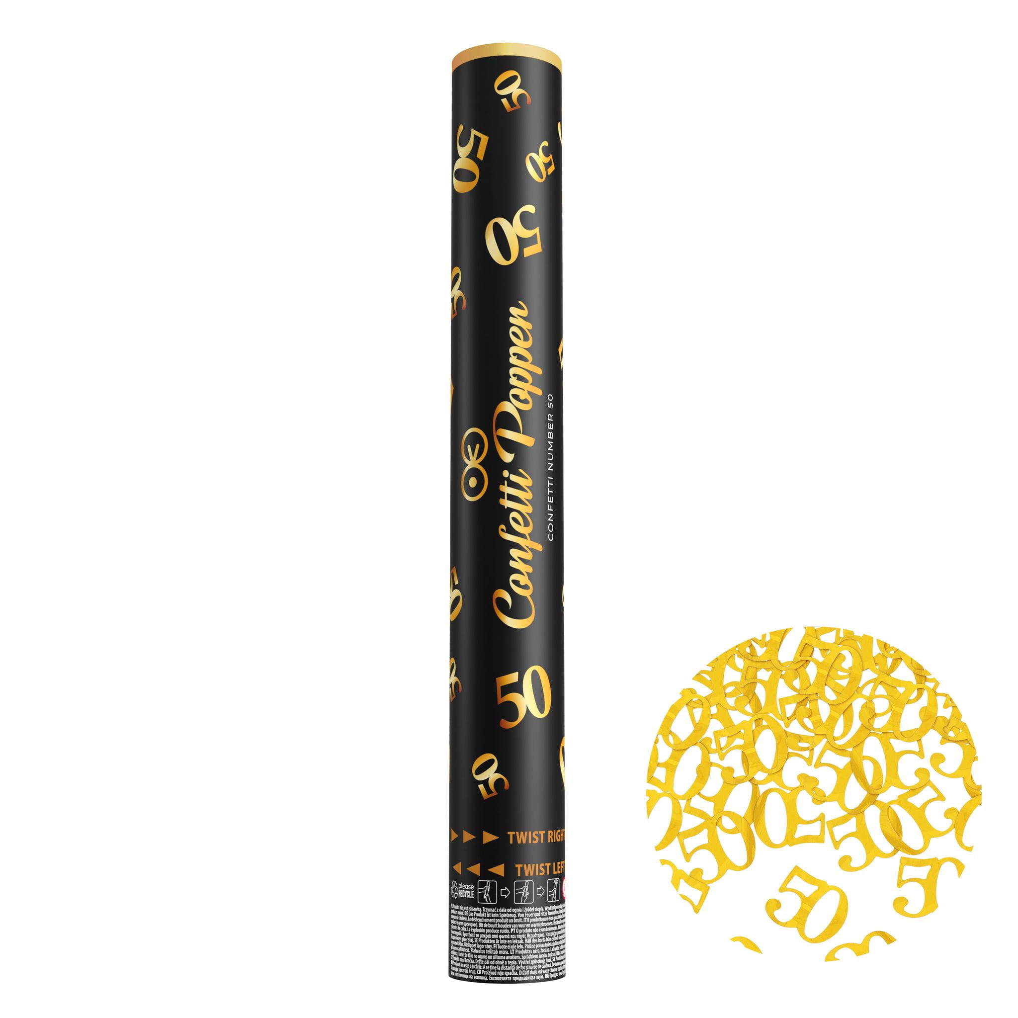 Tuba z konfetti cyfra 50 metaliczne złote 40 cm