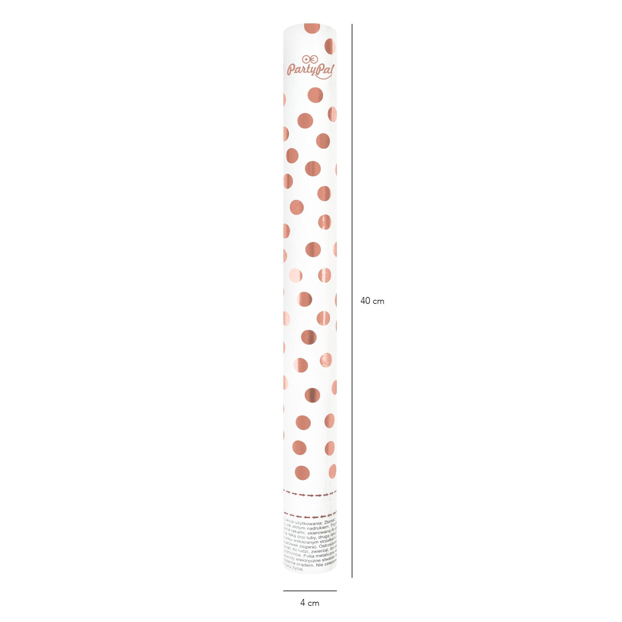 Tuba z konfetti kółka metaliczne rose gold 40 cm