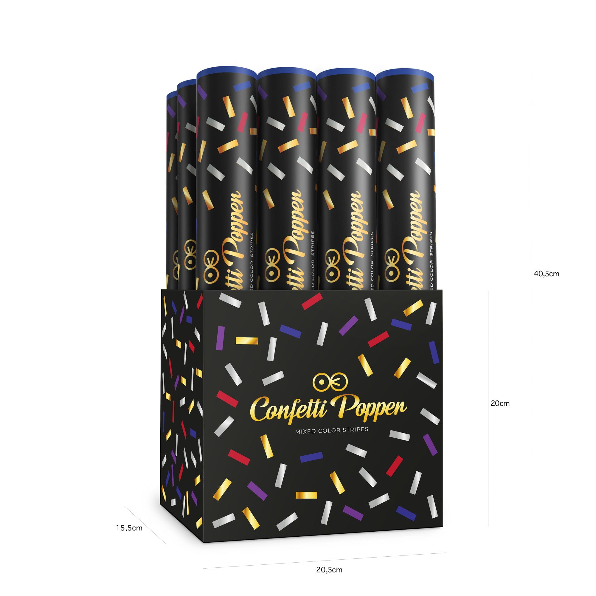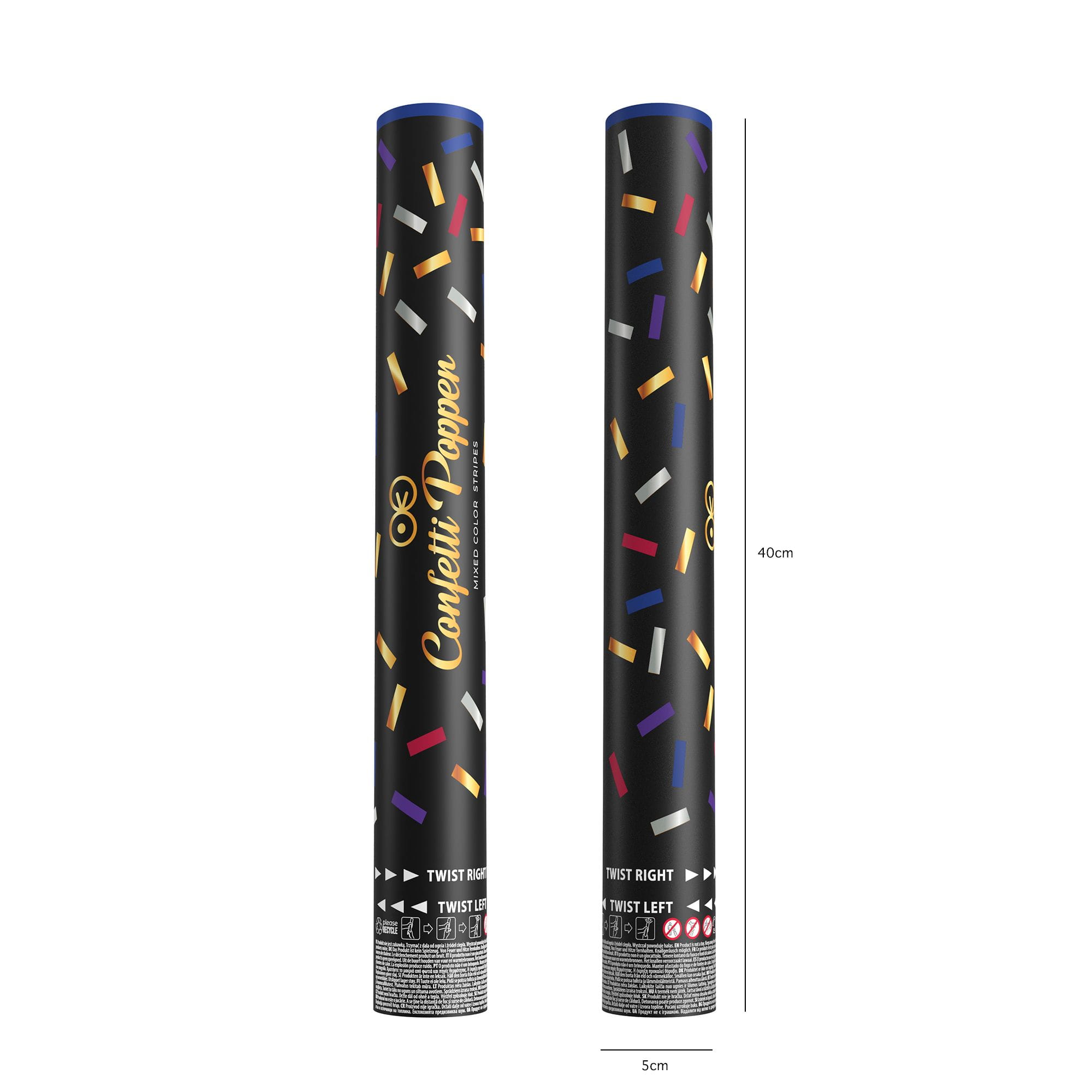Tuba z konfetti paski metaliczne kolorowe 40 cm