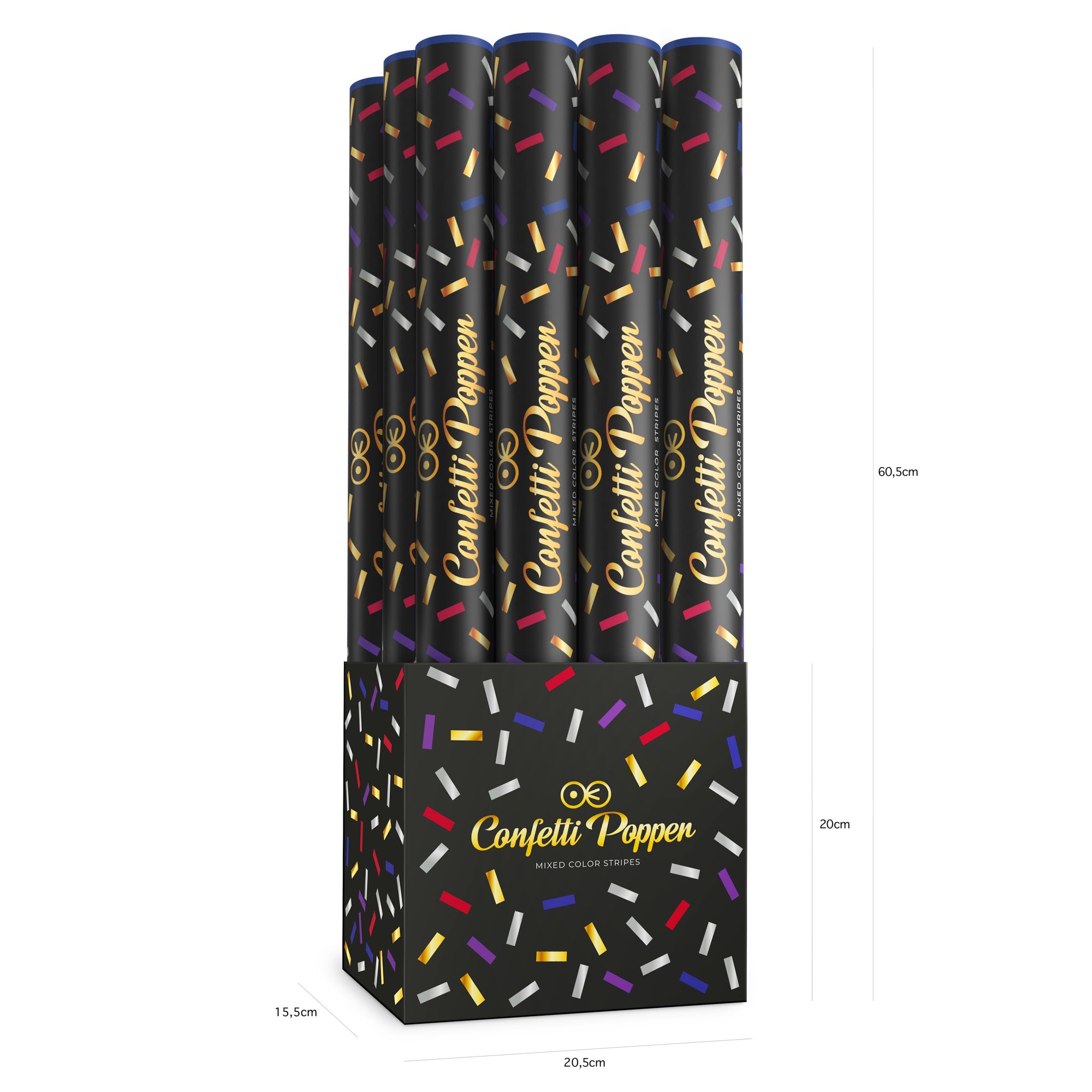 Tuba z konfetti paski metaliczne kolorowe 60 cm