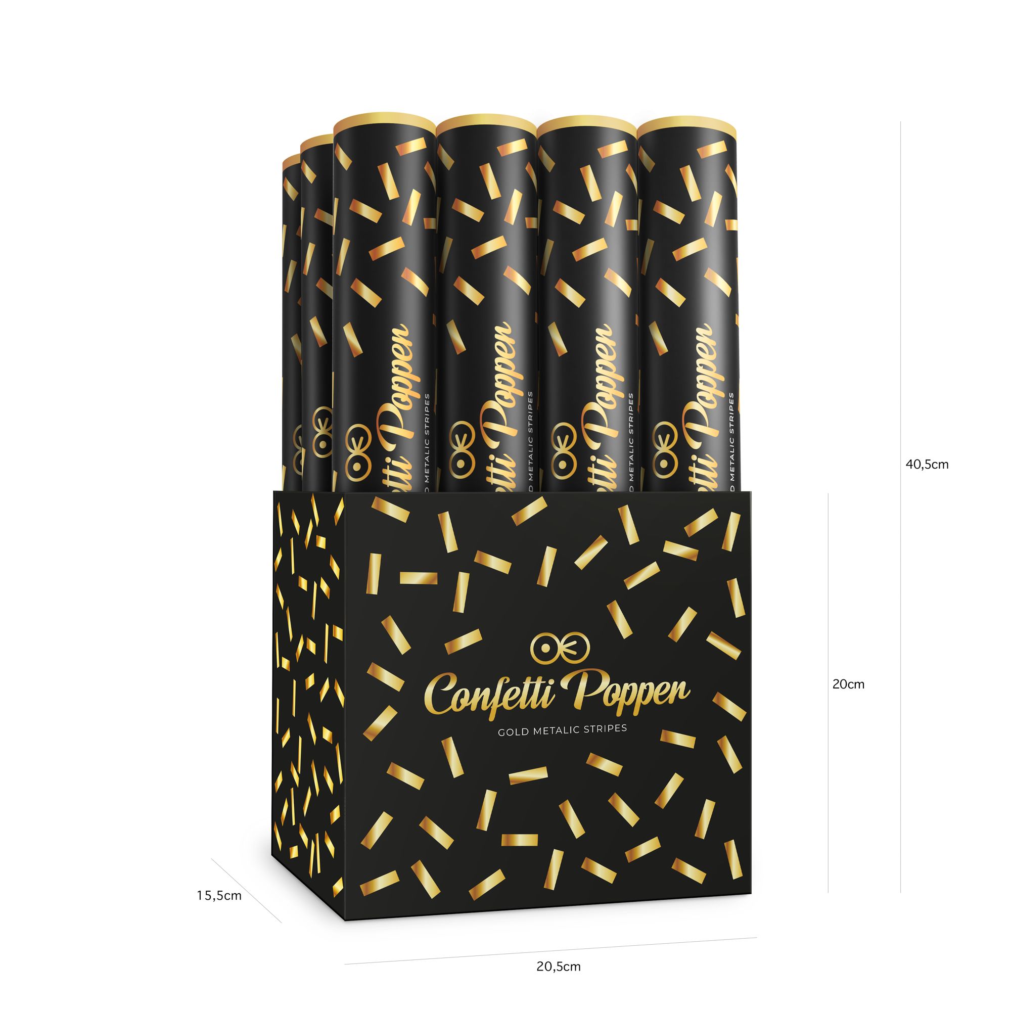 Tuba z konfetti paski metaliczne złote 40 cm