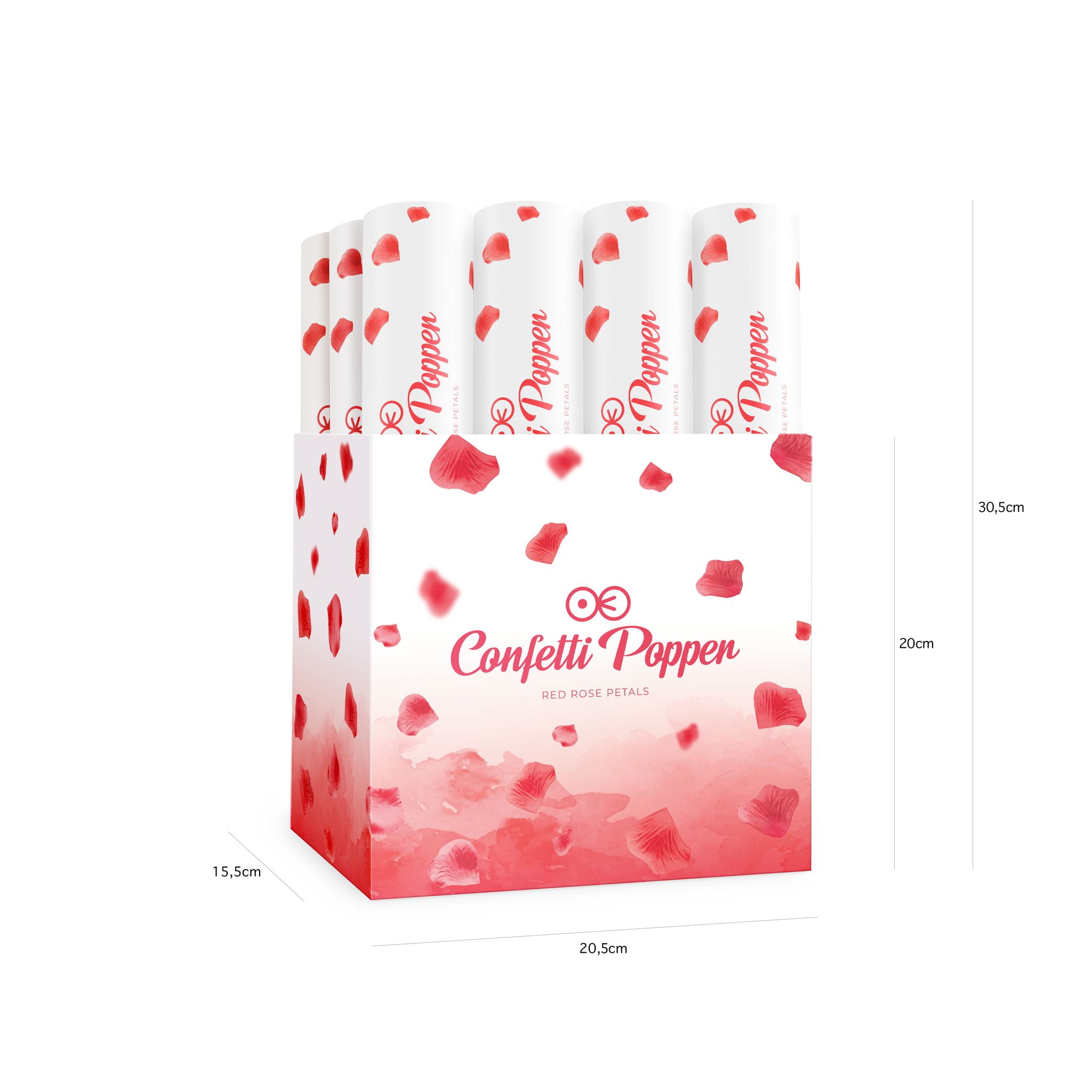 Tuba z konfetti płatki róż czerwone 30 cm