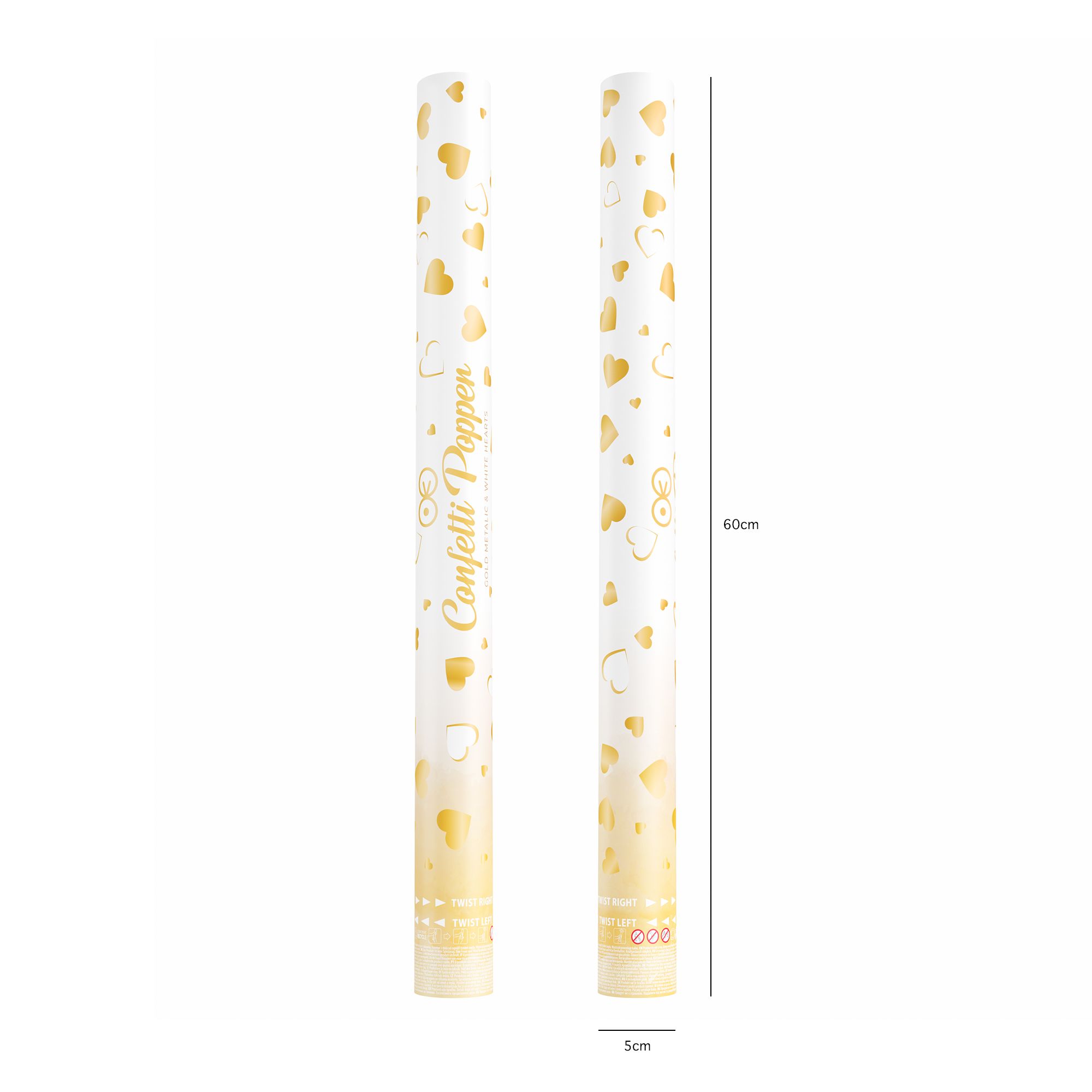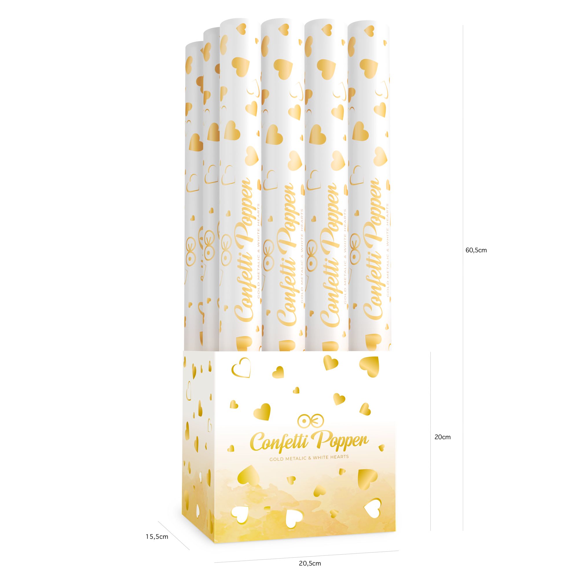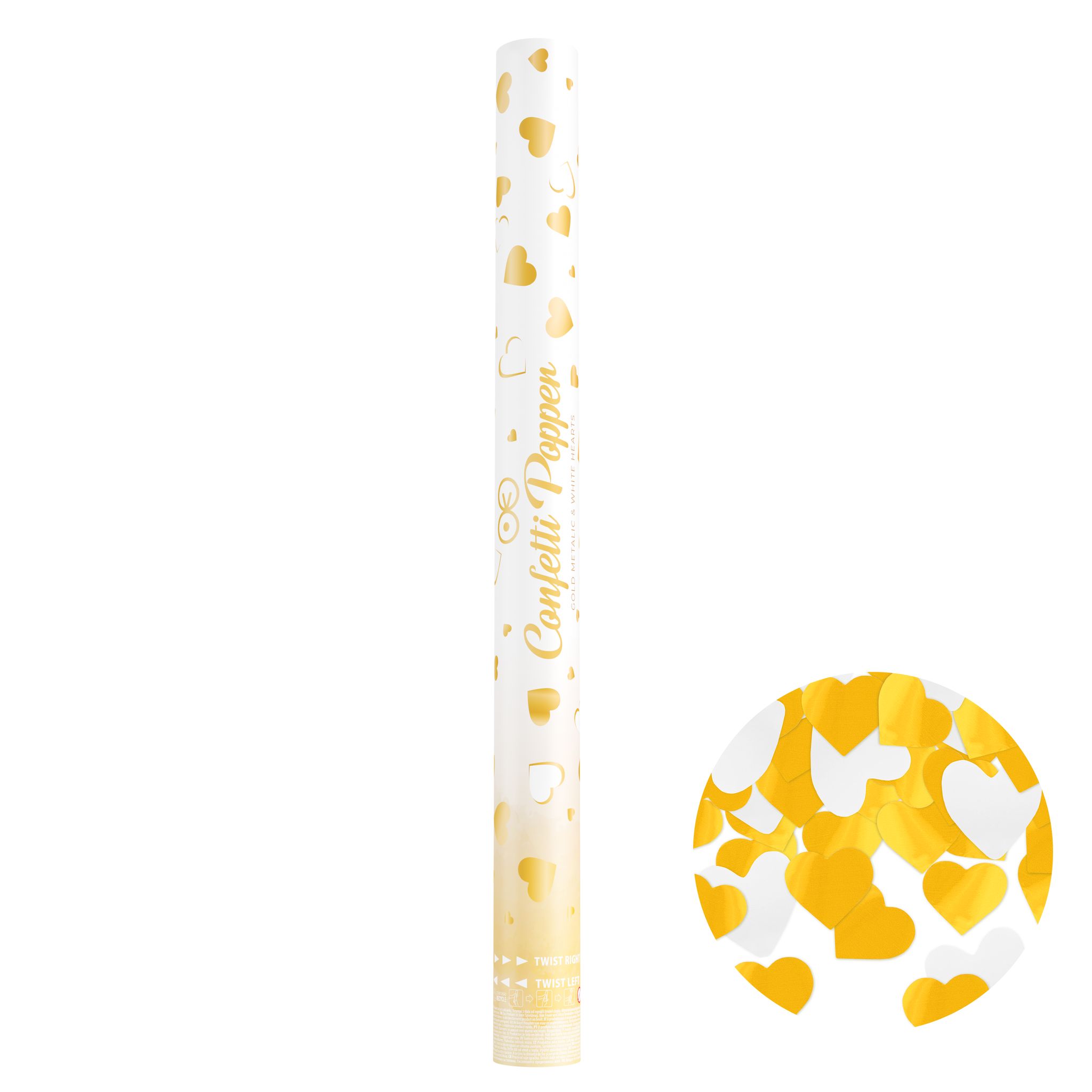 Tuba z konfetti serca białe i metaliczne złote 60 cm
