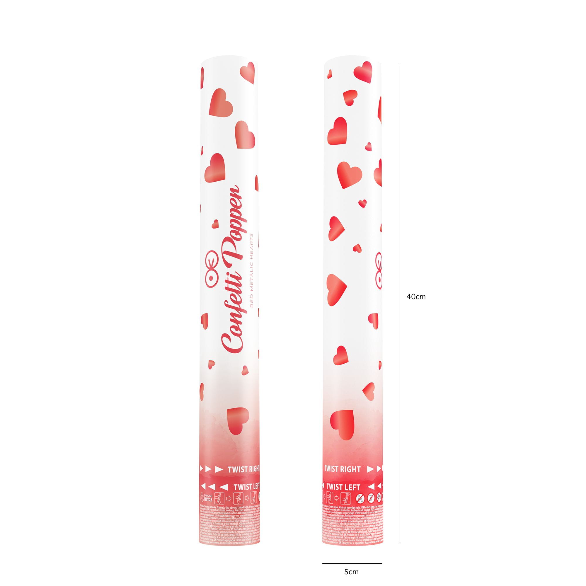 Tuba z konfetti serca metaliczne czerwone 40 cm