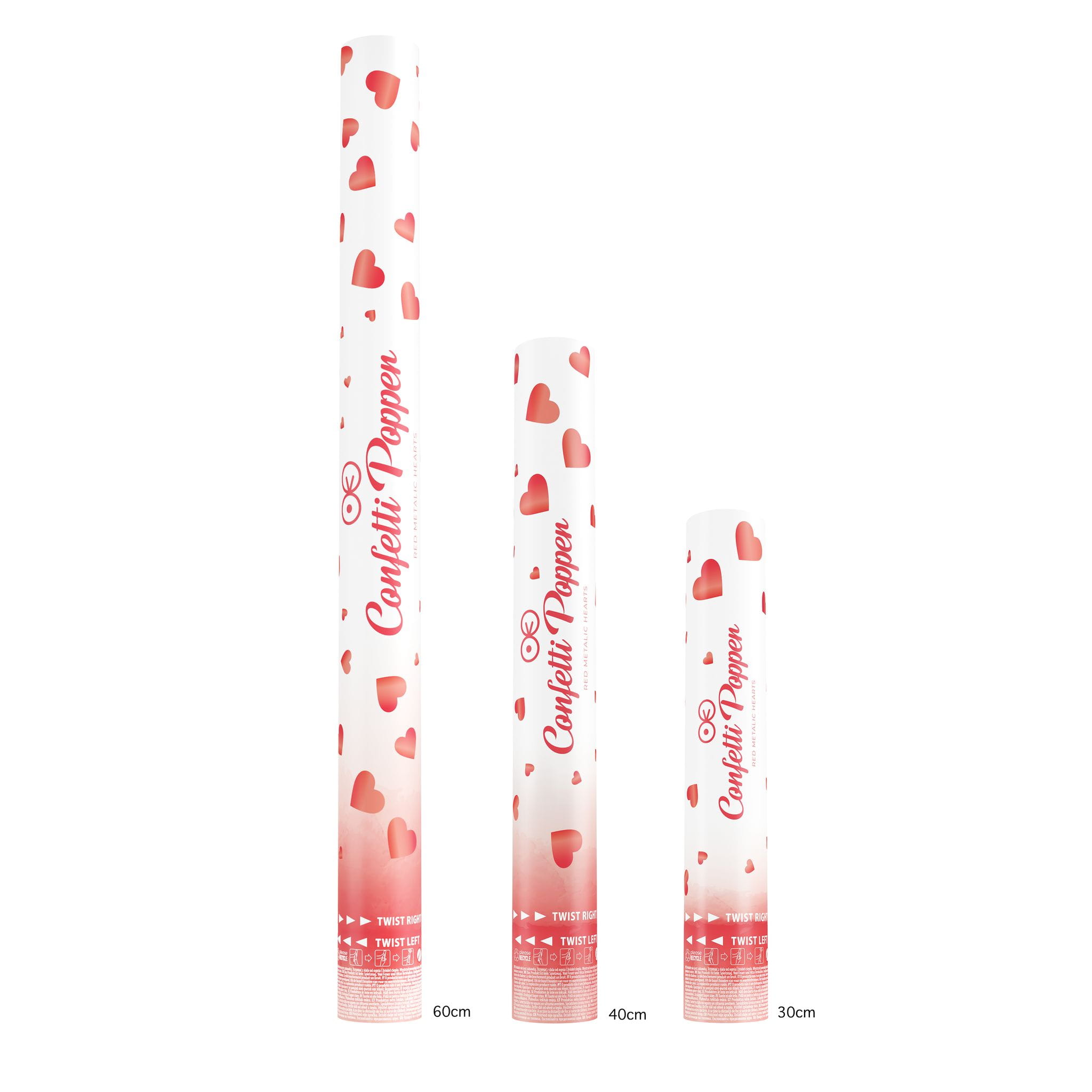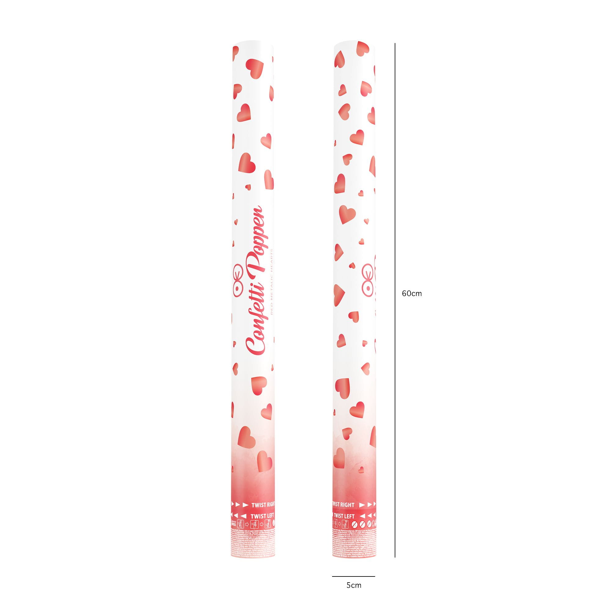 Tuba z konfetti serca metaliczne czerwone 60 cm