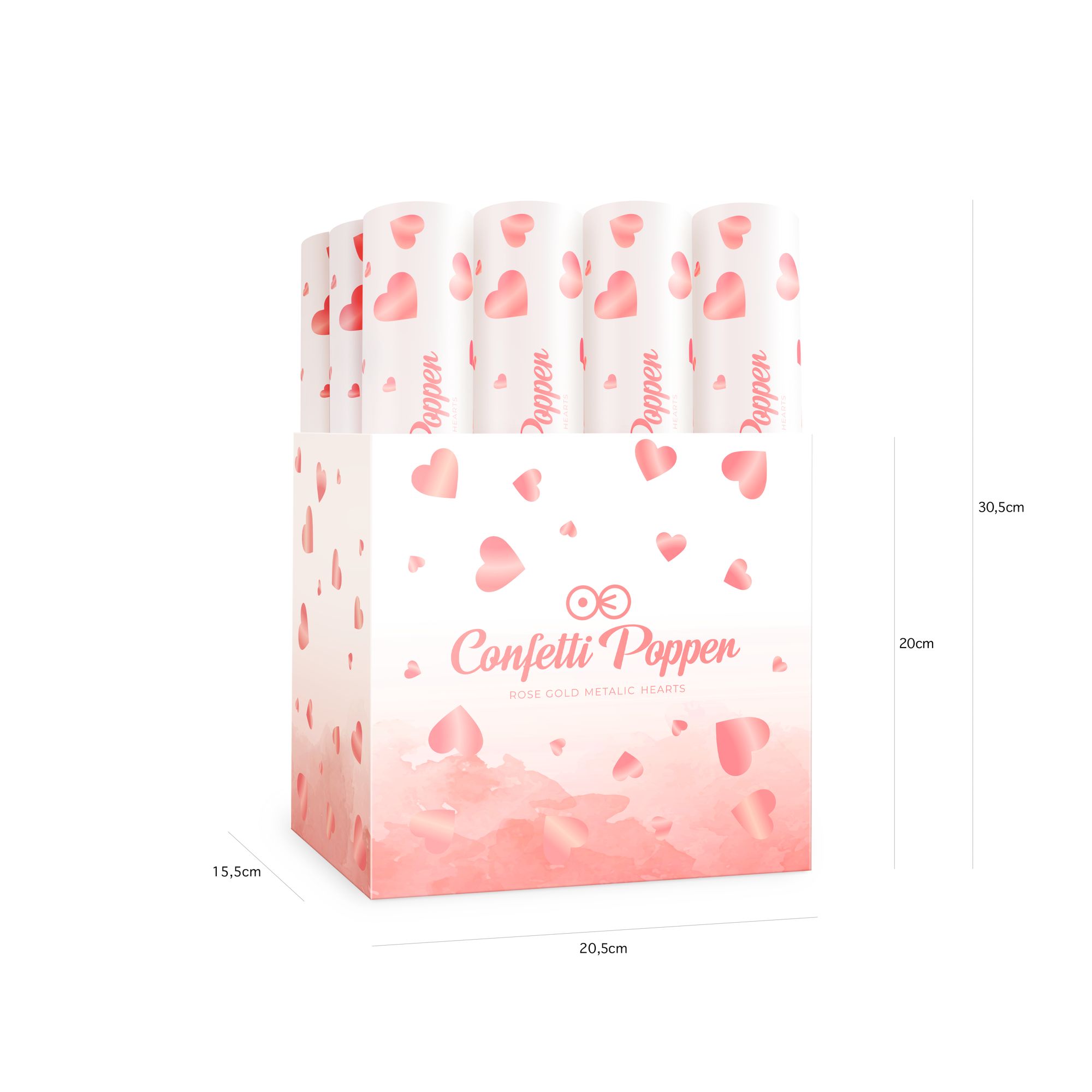 Tuba z konfetti serca metaliczne rose gold 30 cm