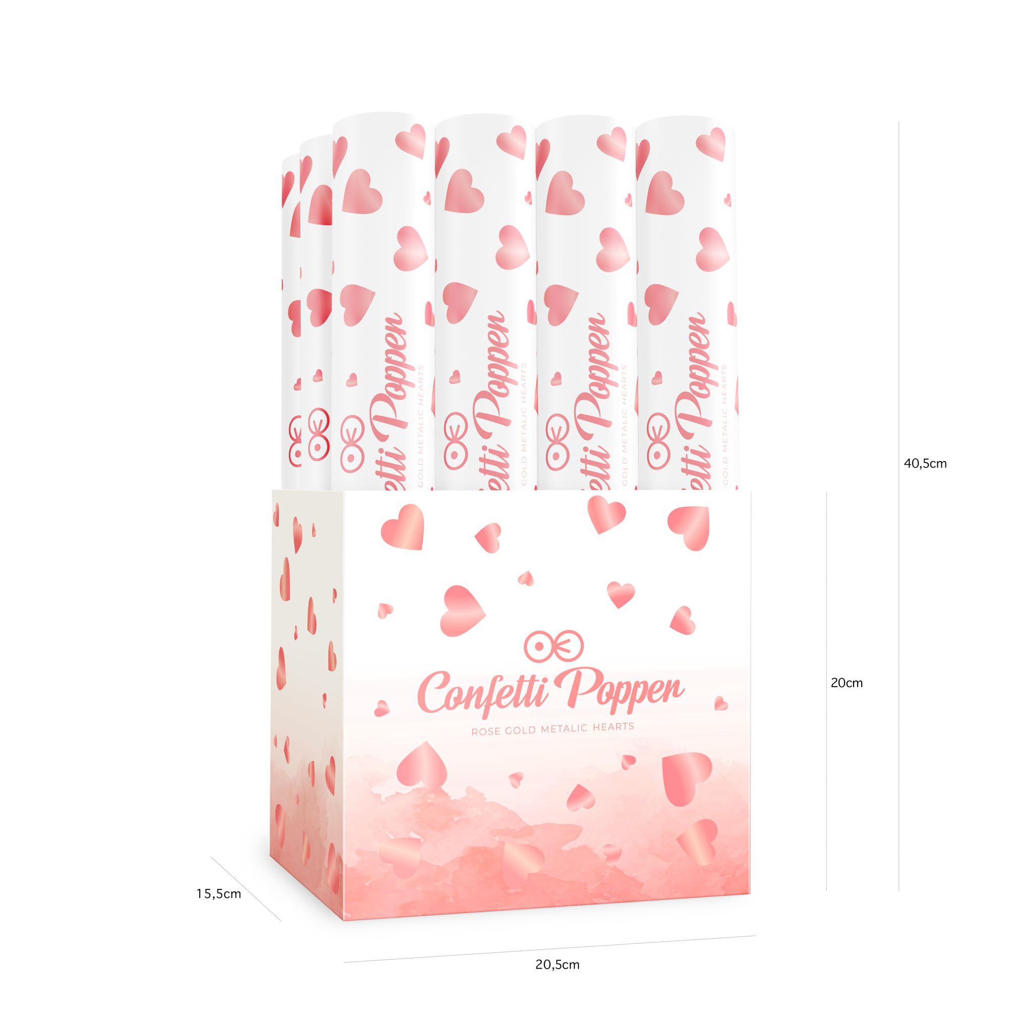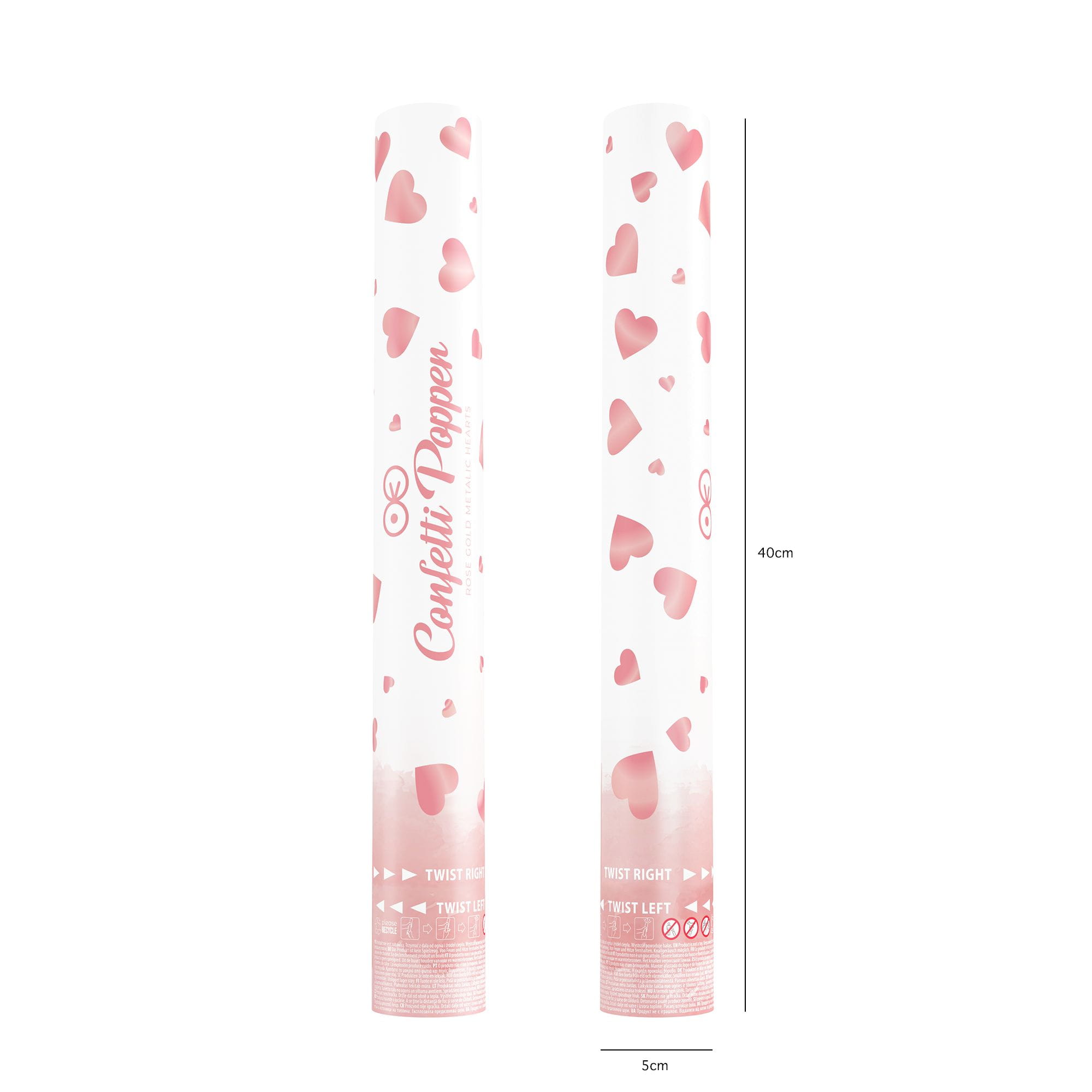 Tuba z konfetti serca metaliczne rose gold 40 cm