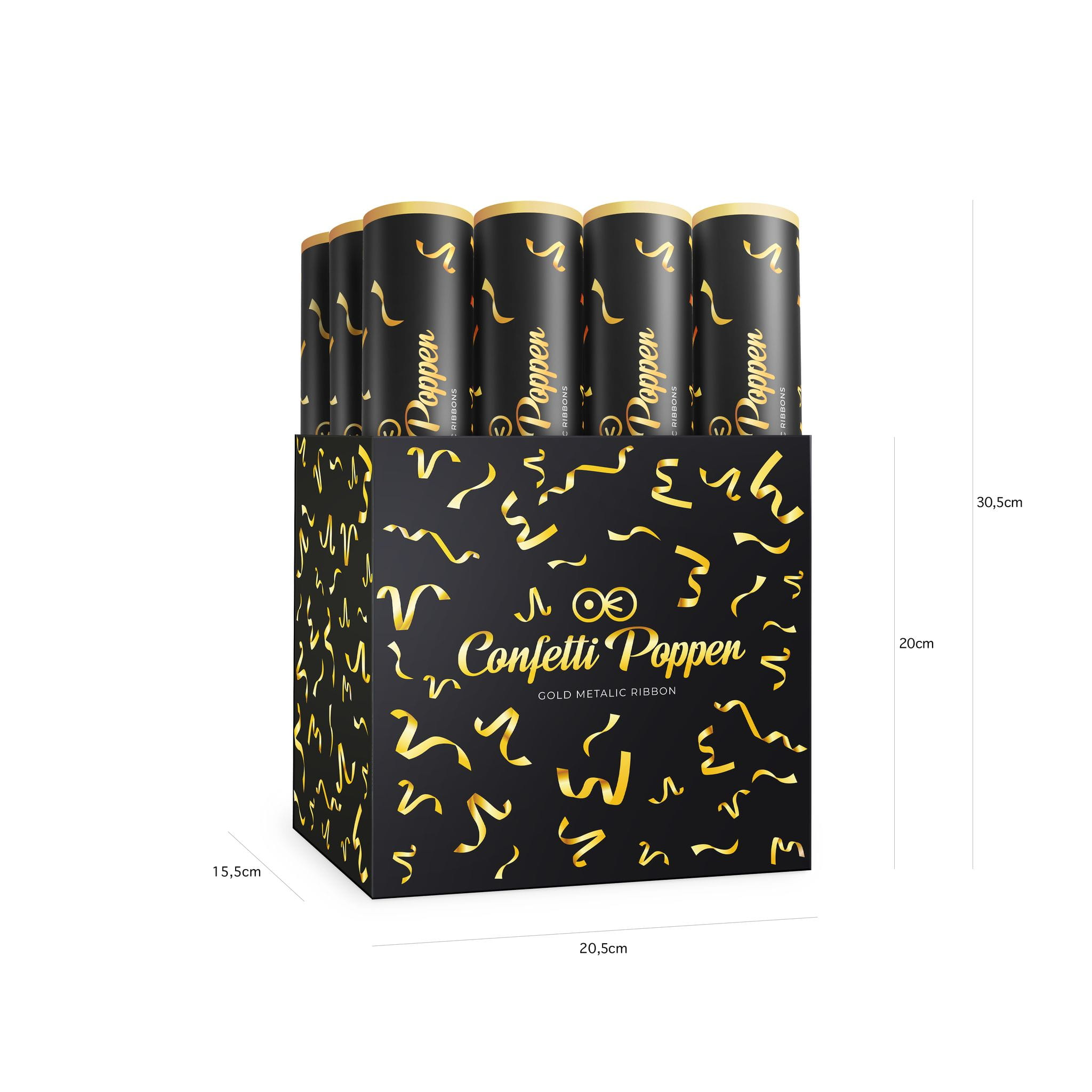 Tuba z konfetti serpentynki metaliczne złote 30 cm