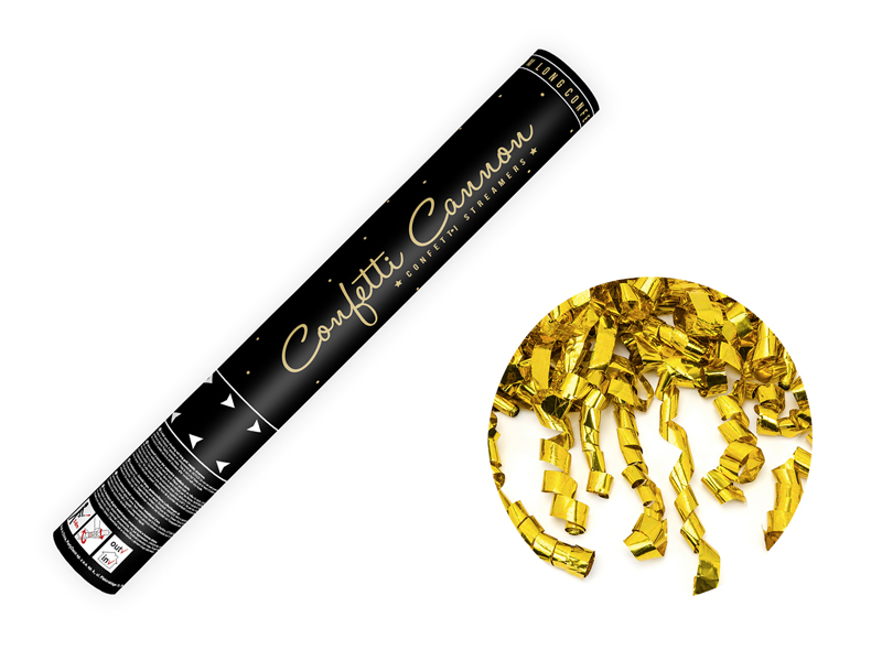 Tuba z serpentynami złoty 40 cm