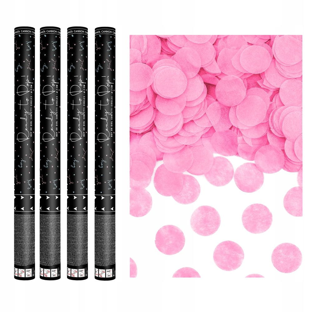 Tuby strzelające konfetti różowe na gender reveal 60 cm 4 szt