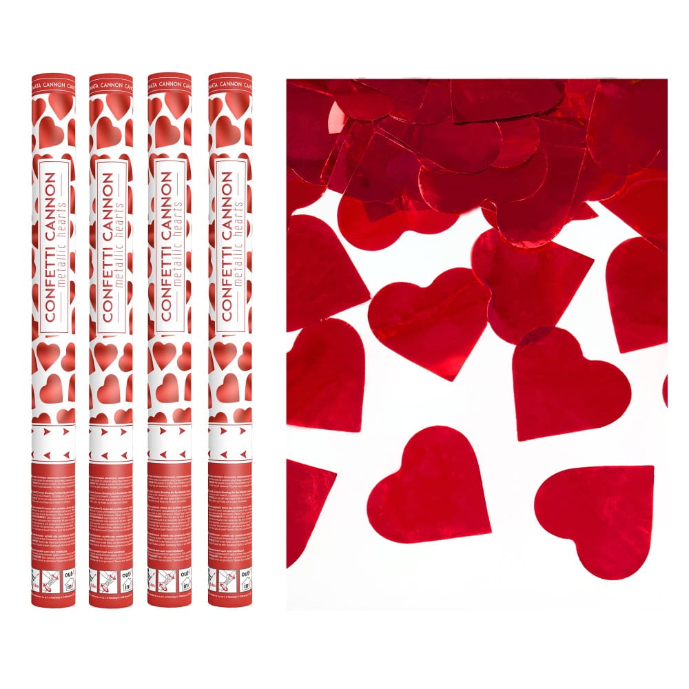 Tuby strzelające konfetti serca czerwone 60 cm 4 szt
