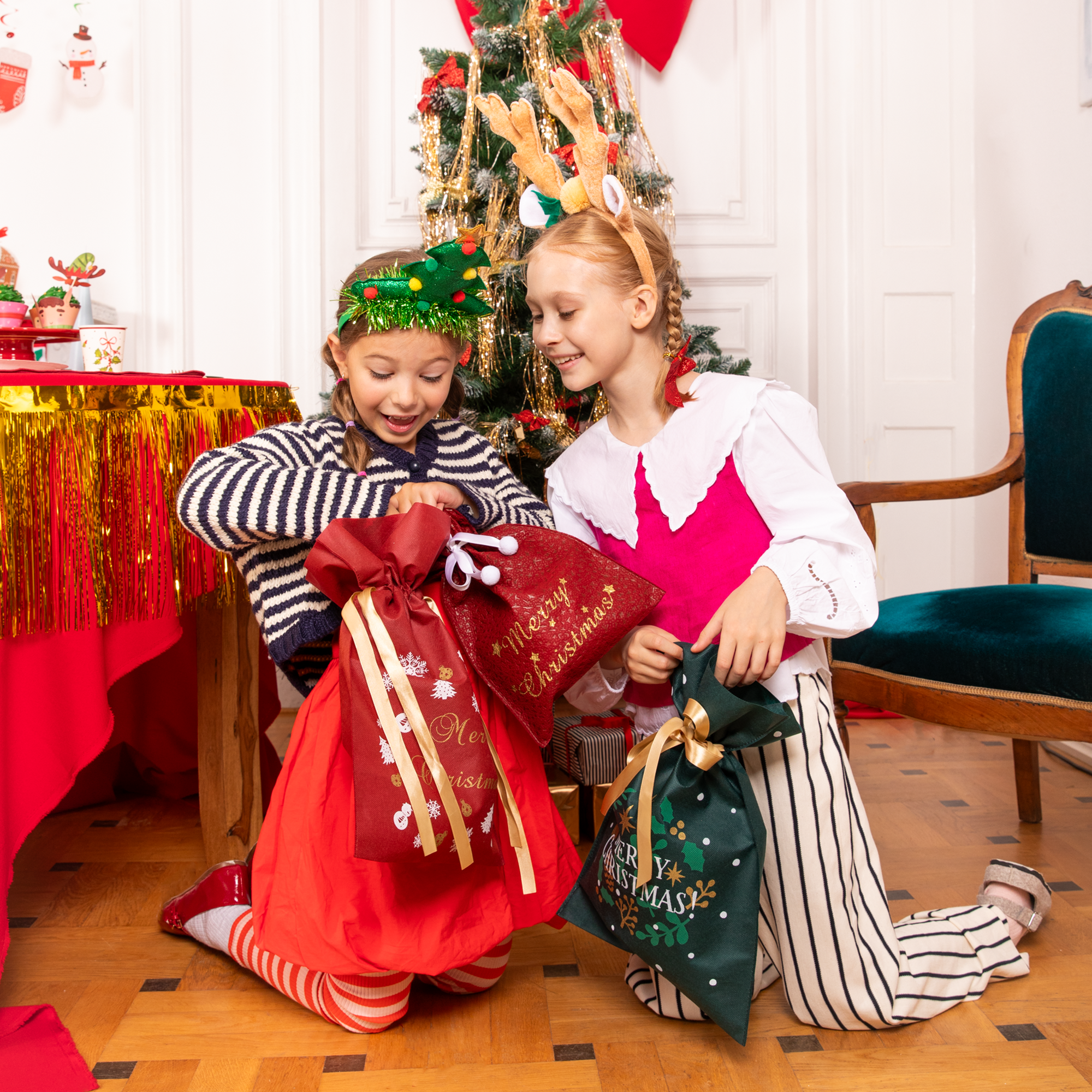 Worek na prezenty świąteczny bordowy mały tłoczony 23 cm x 33 cm