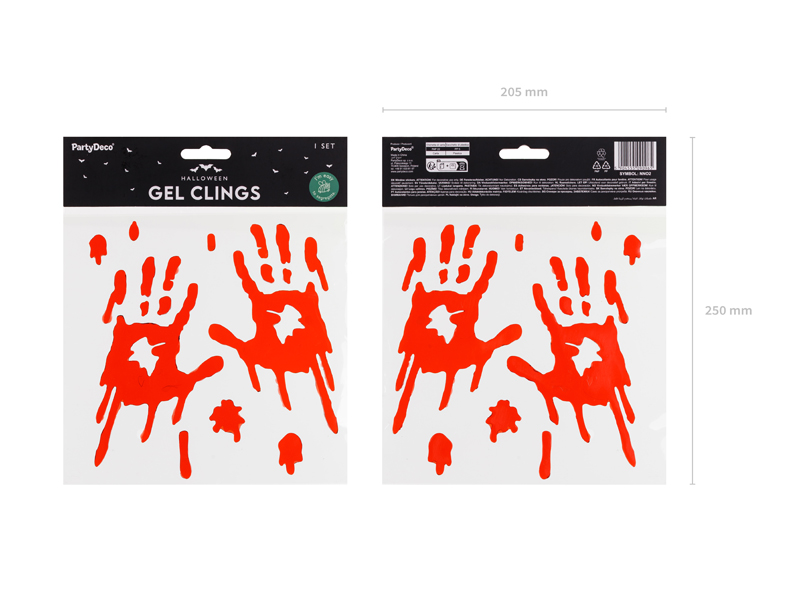 Żelowe naklejki na okno Zakrwawione dłonie czerwone na Halloween