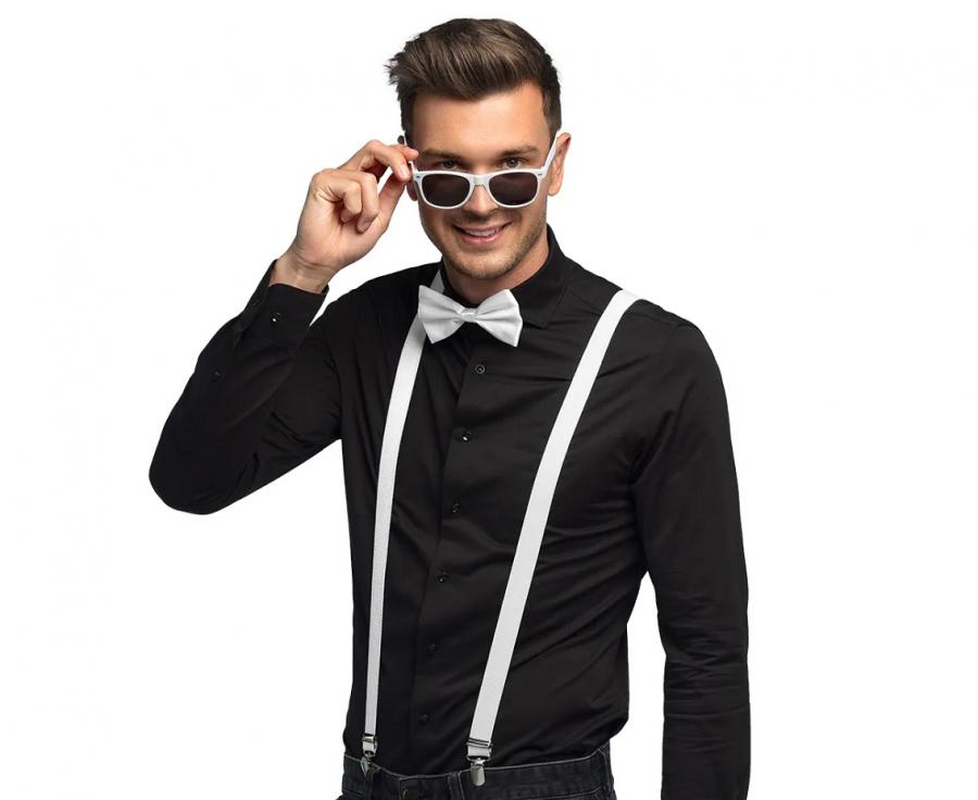 Zestaw imprezowy dla mężczyzny (okulary muszka szelki) biały