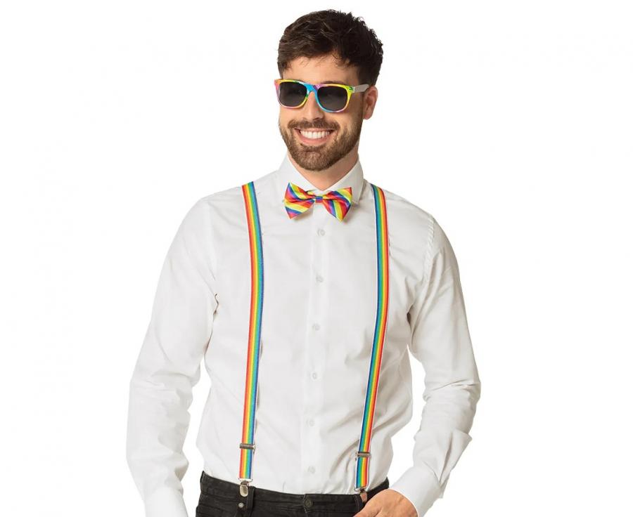 Zestaw imprezowy dla mężczyzny (okulary muszka szelki) tęczowy
