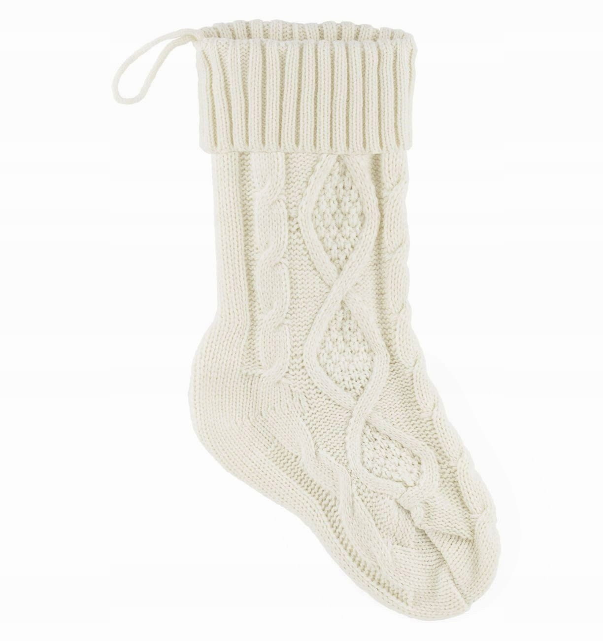 Prezentowana świąteczna skarpeta na prezenty została wykonana z tkaniny w kolorze złamanej bieli, uszytej w klasyczny wzór. Przyjemny odcień wspaniale skomponuje się z resztą świątecznych dekoracji, niezależnie od tego czy dekorujesz dom na Boże Narodzenie stylu w nowoczesnym, czy w stylu vintage.