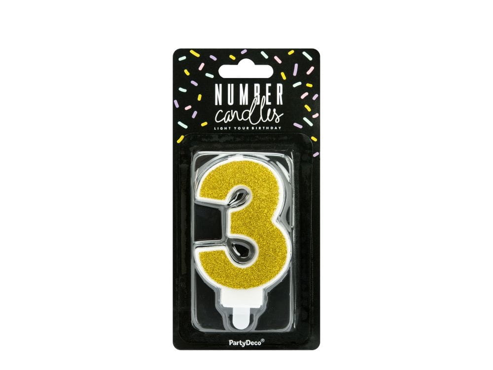 Świeczka cyfra 3 złota
