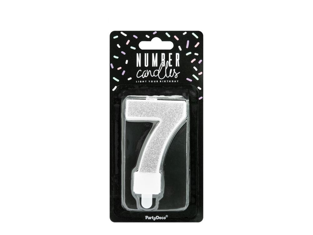 Świeczka cyfra 7 srebrna