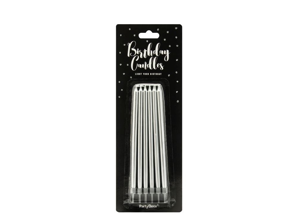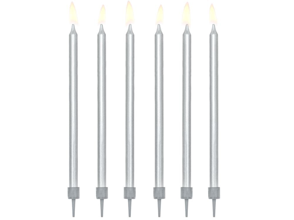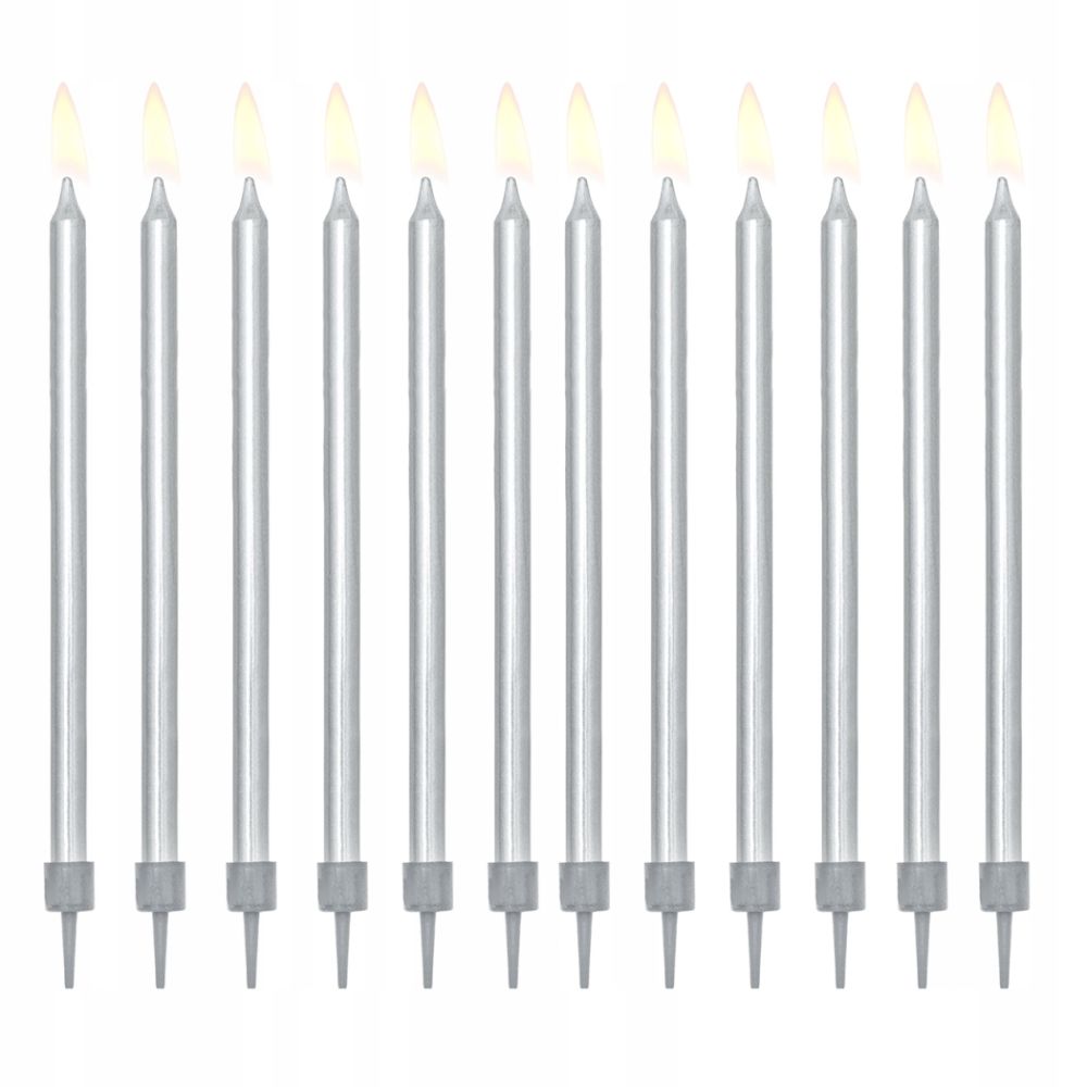 Świeczki urodzinowe długie srebrne 12 cm 12 szt